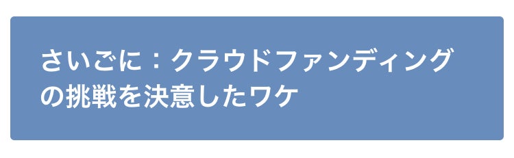 なかなか踏ん切りがつかない日々が続いていましたが、それでも僕はクラウドファンディングに挑戦することを決意。