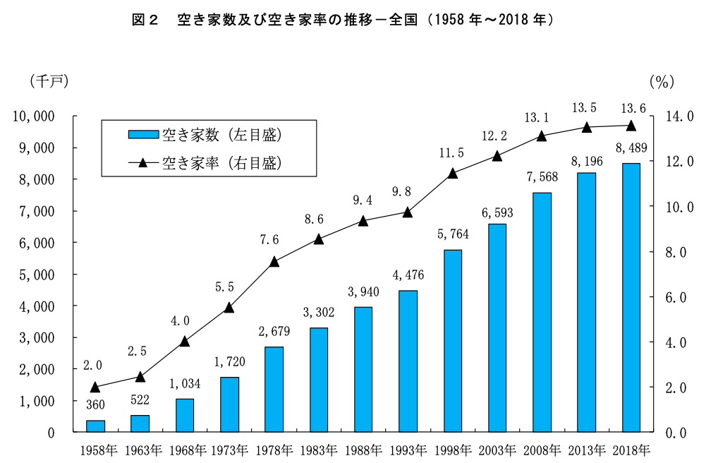 空き家数・空き家率ともに増え続けている