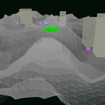 レトロゲームのようなワイヤーフレームの3D地形。