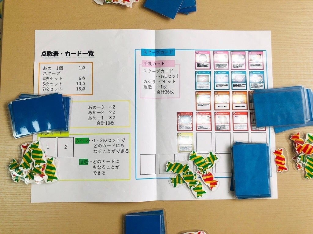 スクープ・キャンディとは、プレイヤーは小学生新聞部となり、スクープとなる学校のニュースを集めて誰がご褒美であるキャンディを一番集めるかを競うというボードゲーム!!