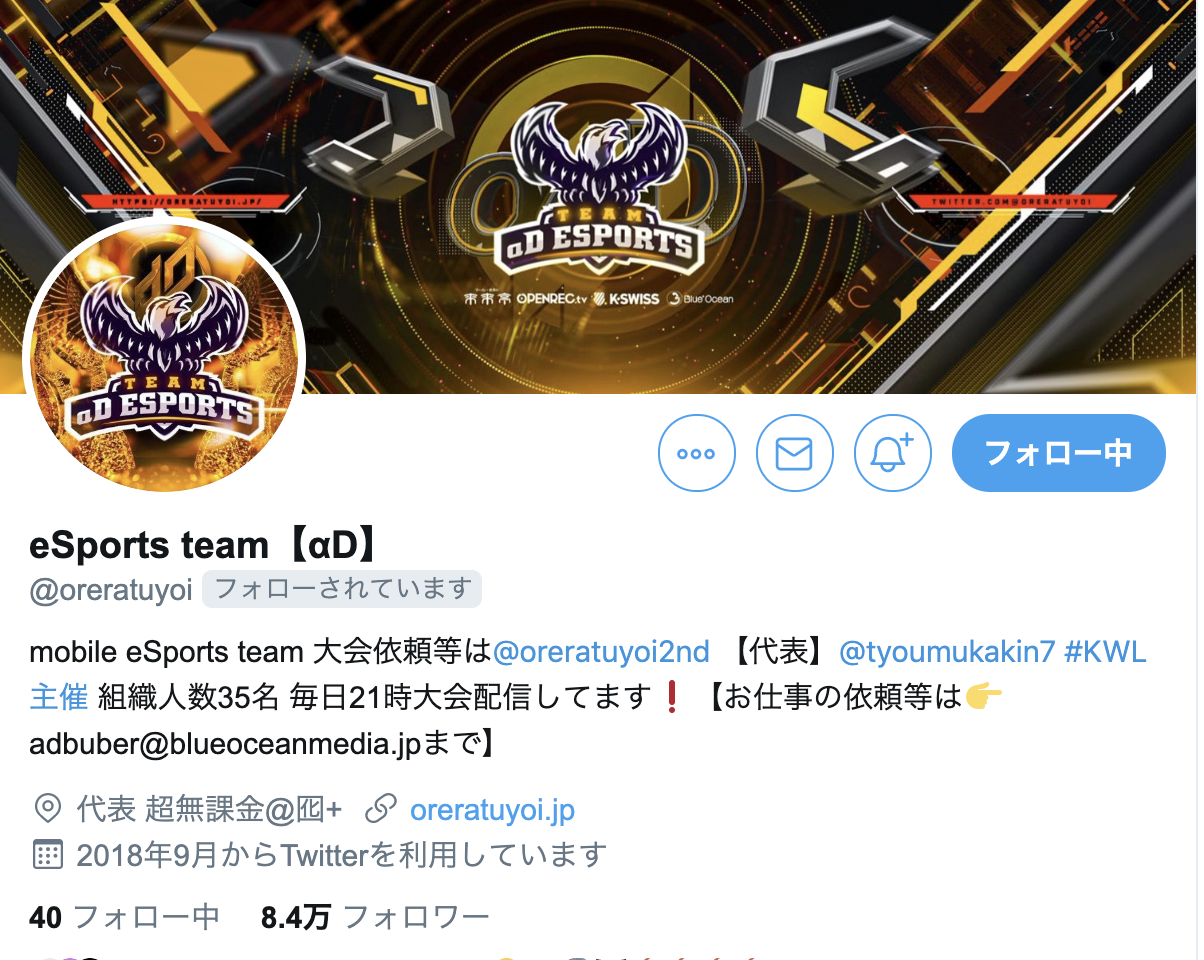 Pro eSports team αD代表 クリエイター名 超無課金です。