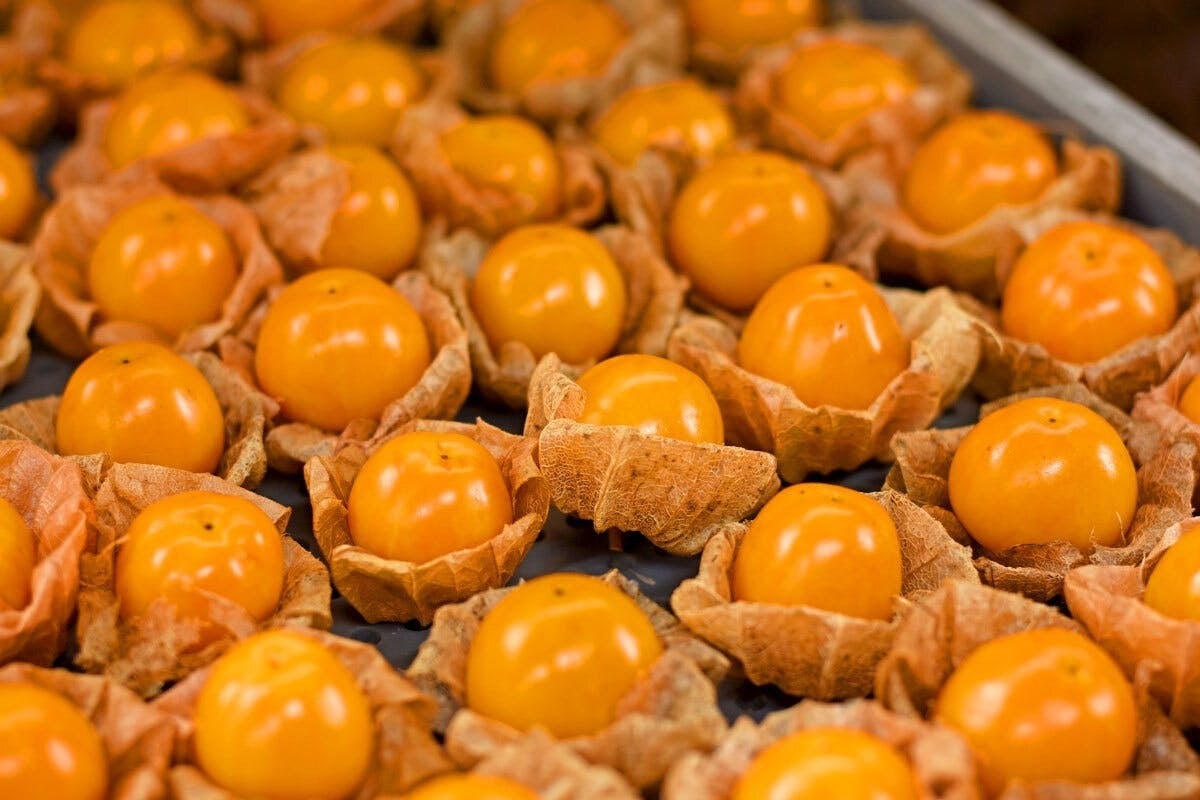 「花貫フルーツほおずき倶楽部」で栽培しているのは「ゴールデンベリー」という品種で、脂肪肝や動脈硬化などの予防及び神経細胞の働きを助けるイノシトール、ビタミンA・B1・B6等のビタミン類が豊富な食材として近年注目を集めています。
