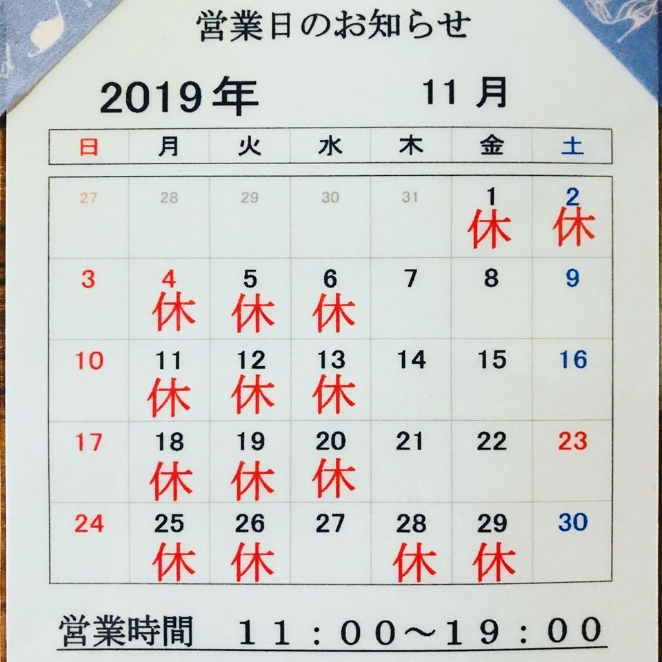 ※11月の営業日は、上記写真をご参照ください。