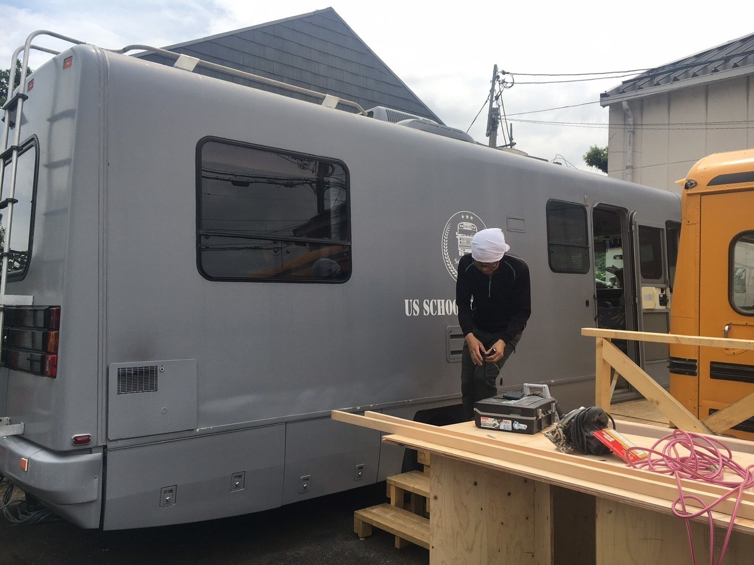 第二弾としてレンタカー事業で使用するアメリカのスクールバスをキャンピングカーに改装する計画を立てています。現在スクールバスの輸入は済んでいて、改装を待っている段階です。