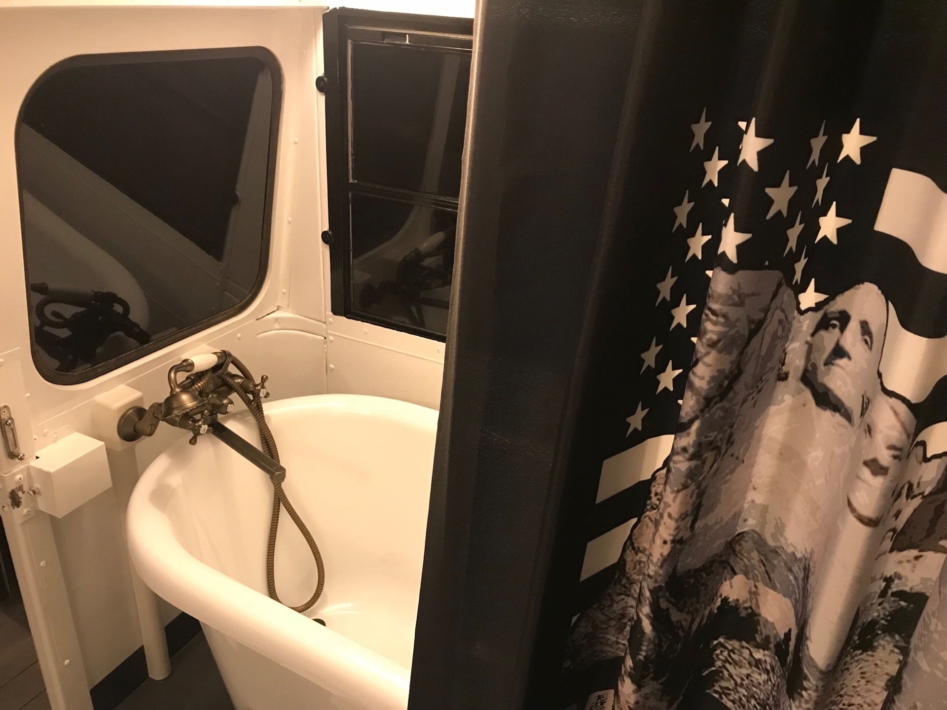 スクールバスにはベッドが2台とバスタブ付きのバスルーム・トイレが付いています。