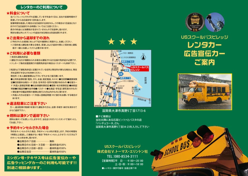 USスクールバスビレッジ、レンタカーのパンフレットが出来上がりました。