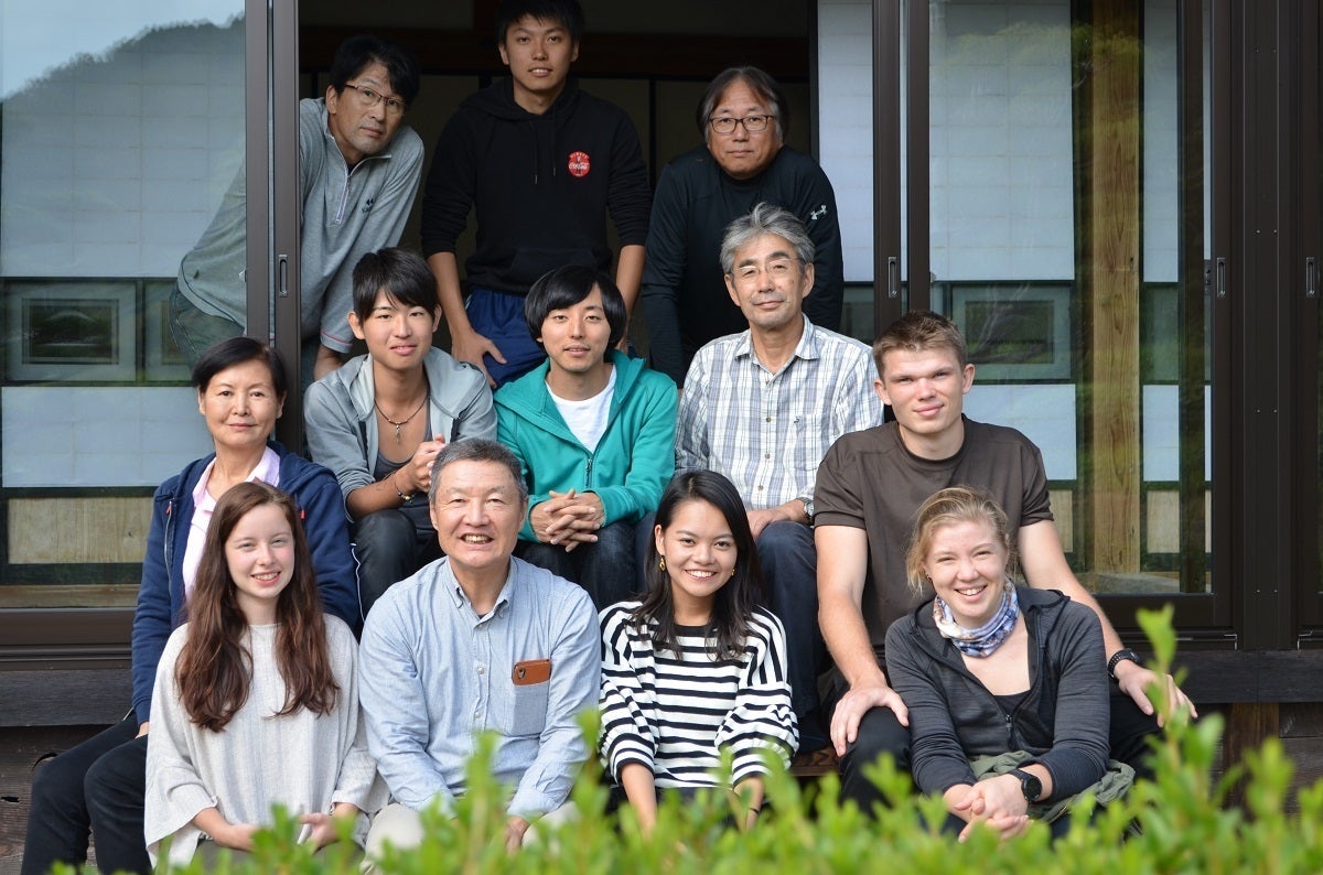 (👇の写真は、2018年の参加者がボランティア活動の休日に、農家民泊「三國屋」を見学したときに、委員会のメンバーなどと一緒に撮影したものです)