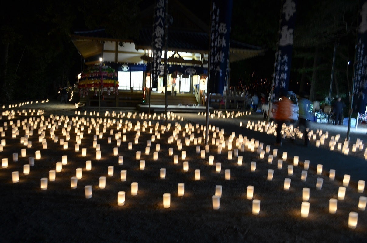この事業は、夜神楽が行われる神社の参道・境内から神楽殿周辺まで、数千本の竹灯籠で飾りつけ、その中で、石見神楽を上演するというものです。そして、その灯りの中で舞われる石見神楽はまさに幻想的なものとなり、50人程度まで減少していた来場者が700人ほどにまで復活したのです。
