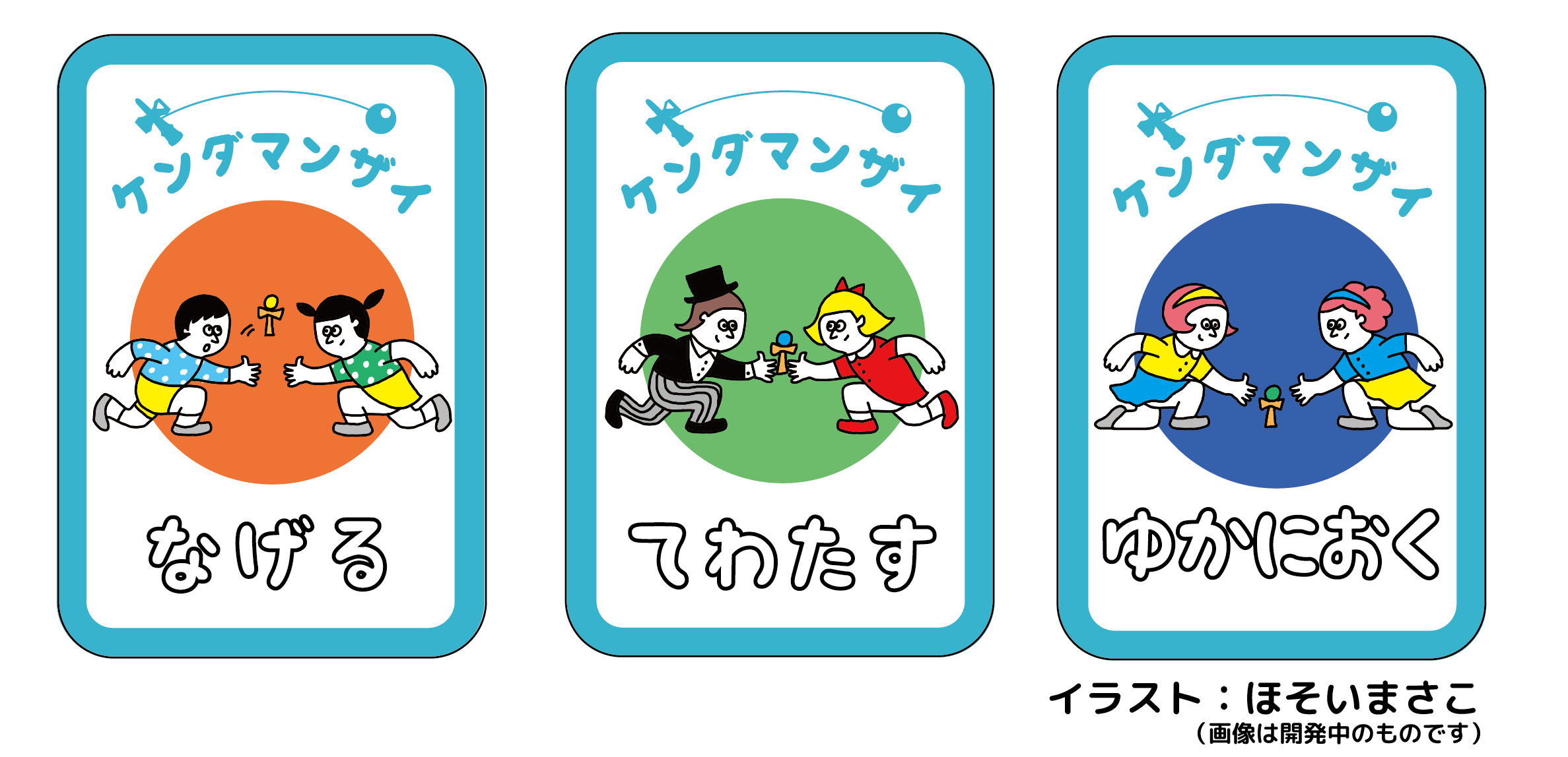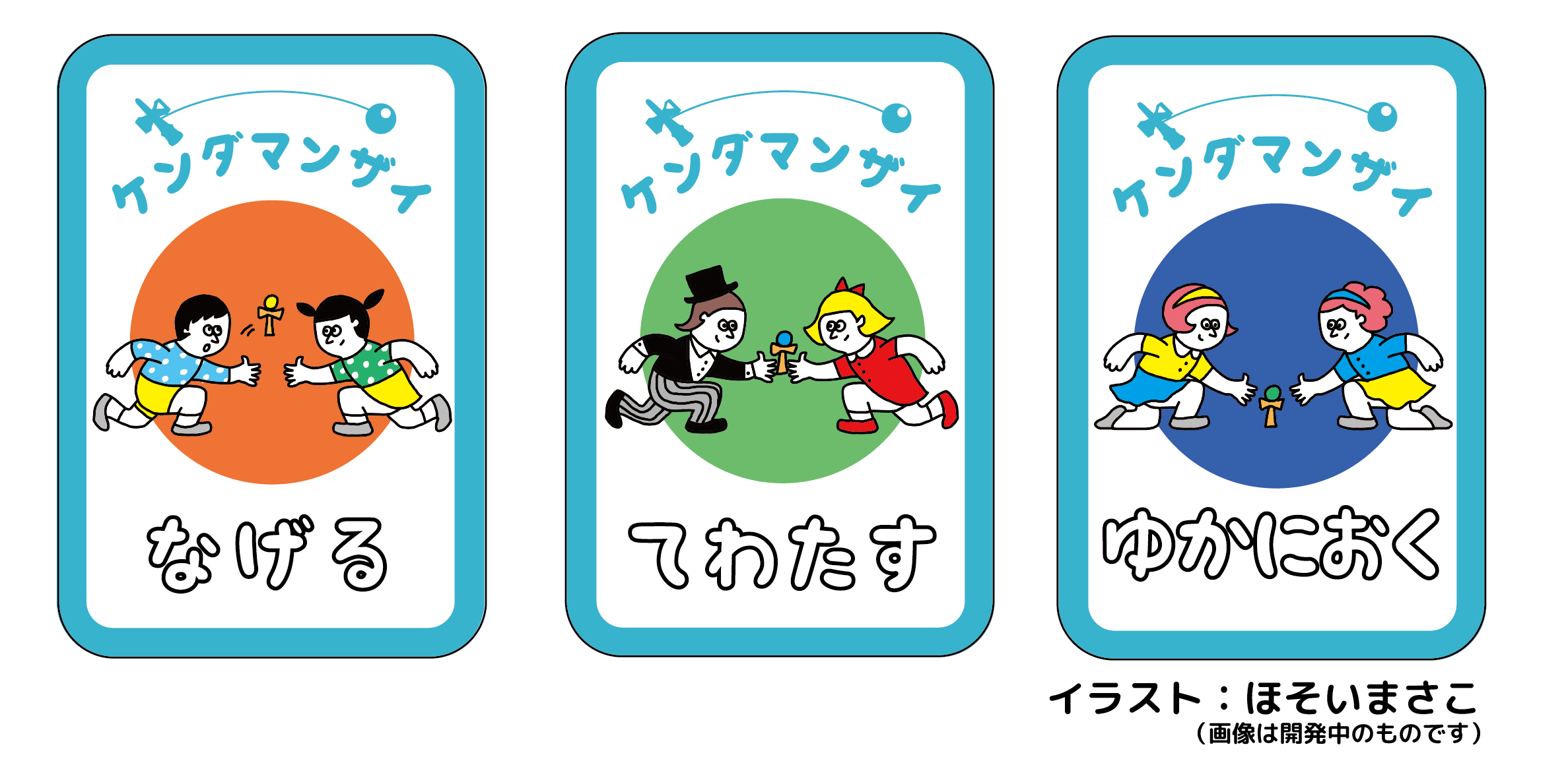 けん玉カードゲーム第3弾『ケンダマンザイ』のイラスト、今回は「ほそいまさこ様」にお願いをしております。