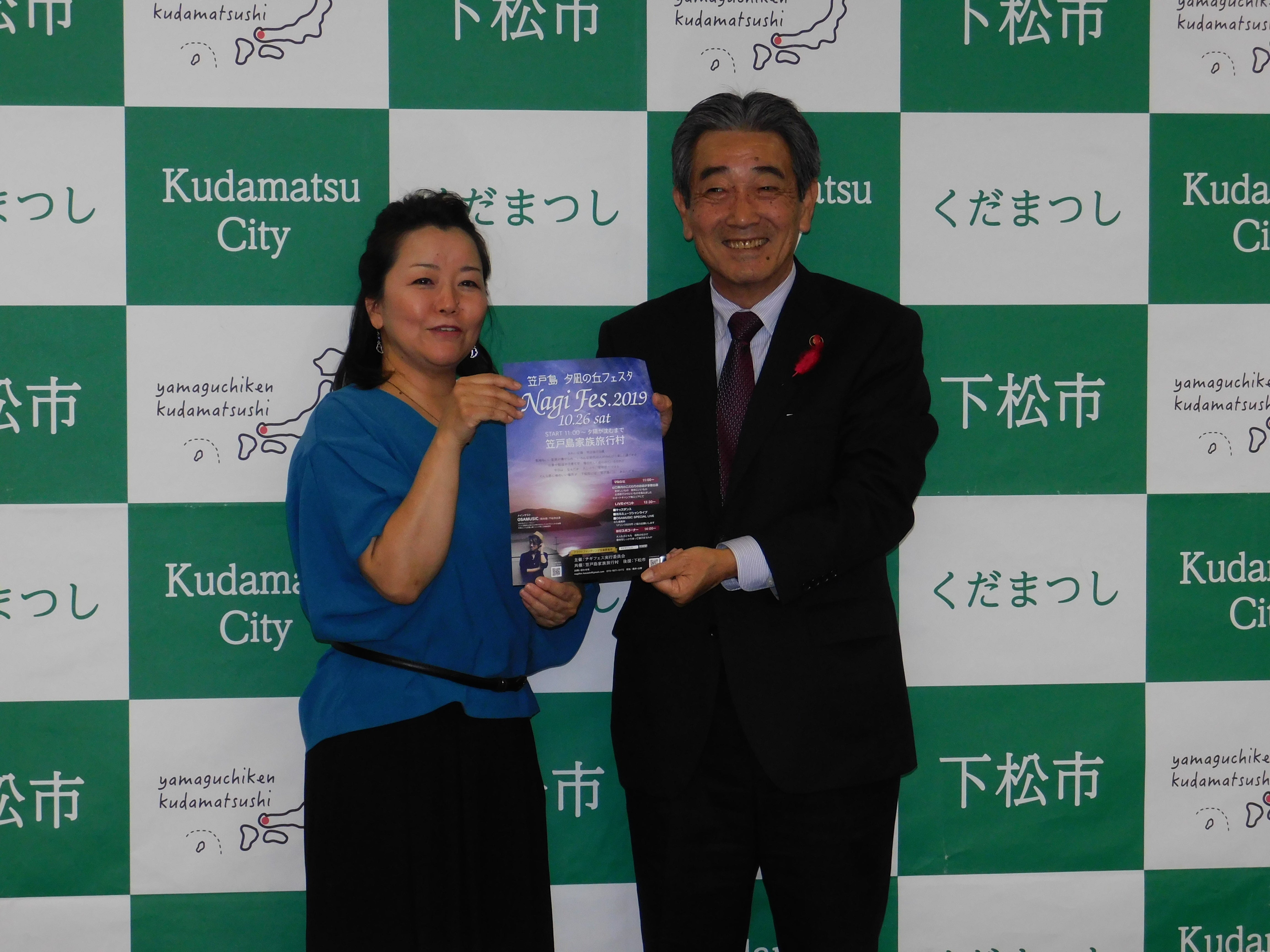 2019/10/28 08:28この度このプロジェクトに参加して下さった全ての皆様に心から感謝申し上げます。当日は朝からお天気に恵まれ、多くの方がご来場下さりイベント大成功で終えることが出来ました。皆様が良かったよーいいイベントでしたーと口々に言われ笑顔で帰って行かれる姿を見て、主催者を始めスタッフ一同嬉しくて涙が止まりませんでした。本当にありがとうございました。返礼品発送も随時行って参ります。引き続き楽しみにお待ち下さい。 もっと見る下松市國井市長を表敬訪問させて頂きました