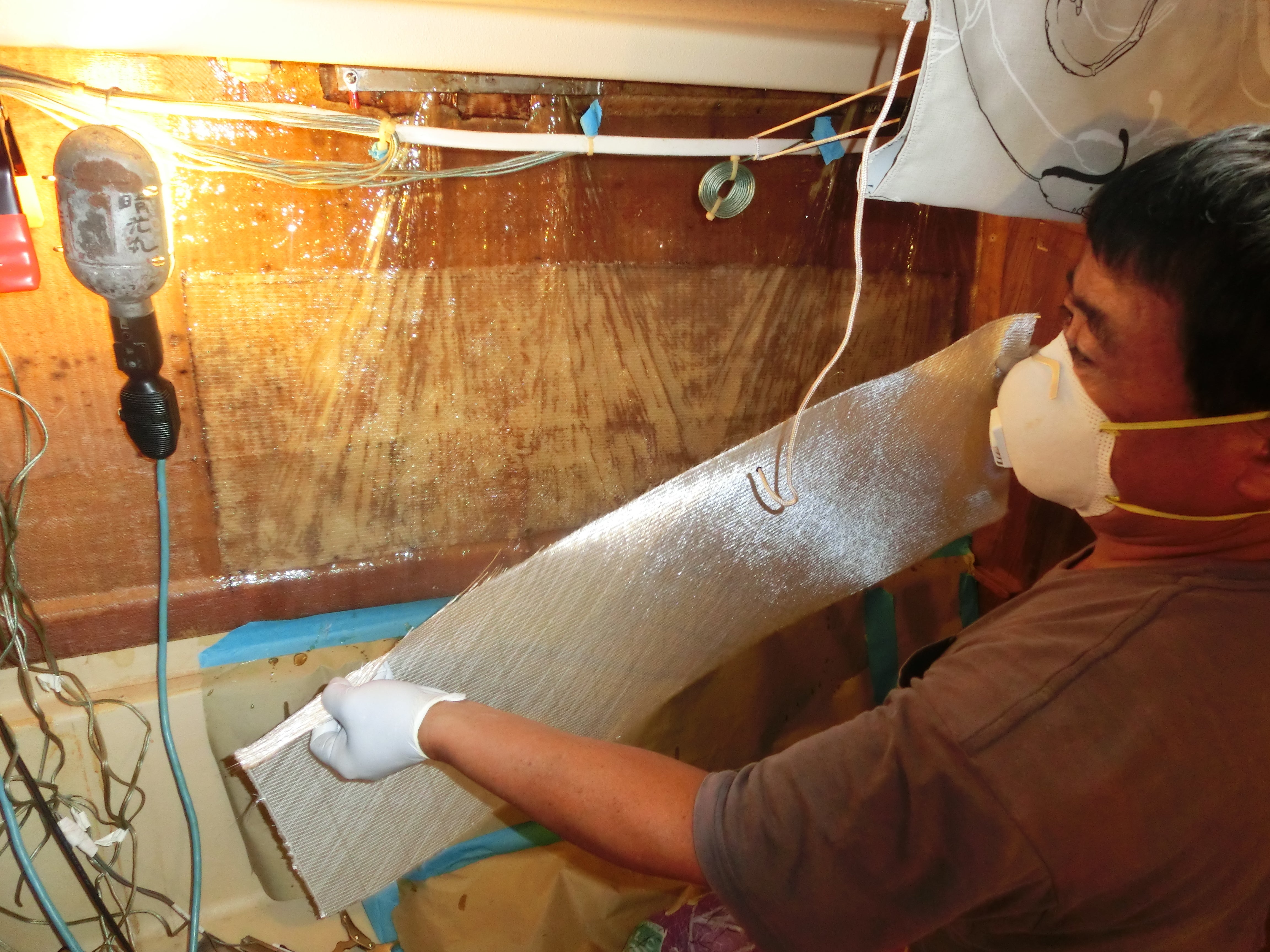 内部ハル(船体)FRP補強修理 私の日本の仕事は住宅建築販売の自営業ですが、バブル経済崩壊後の地価下落の影響もあり、不況の煽りをまともに受け、2000年以降の15年間はろくに利益も出せなかったので、大した貯金も無かったのですが、無理くりお金をかき集めて渡米しました。