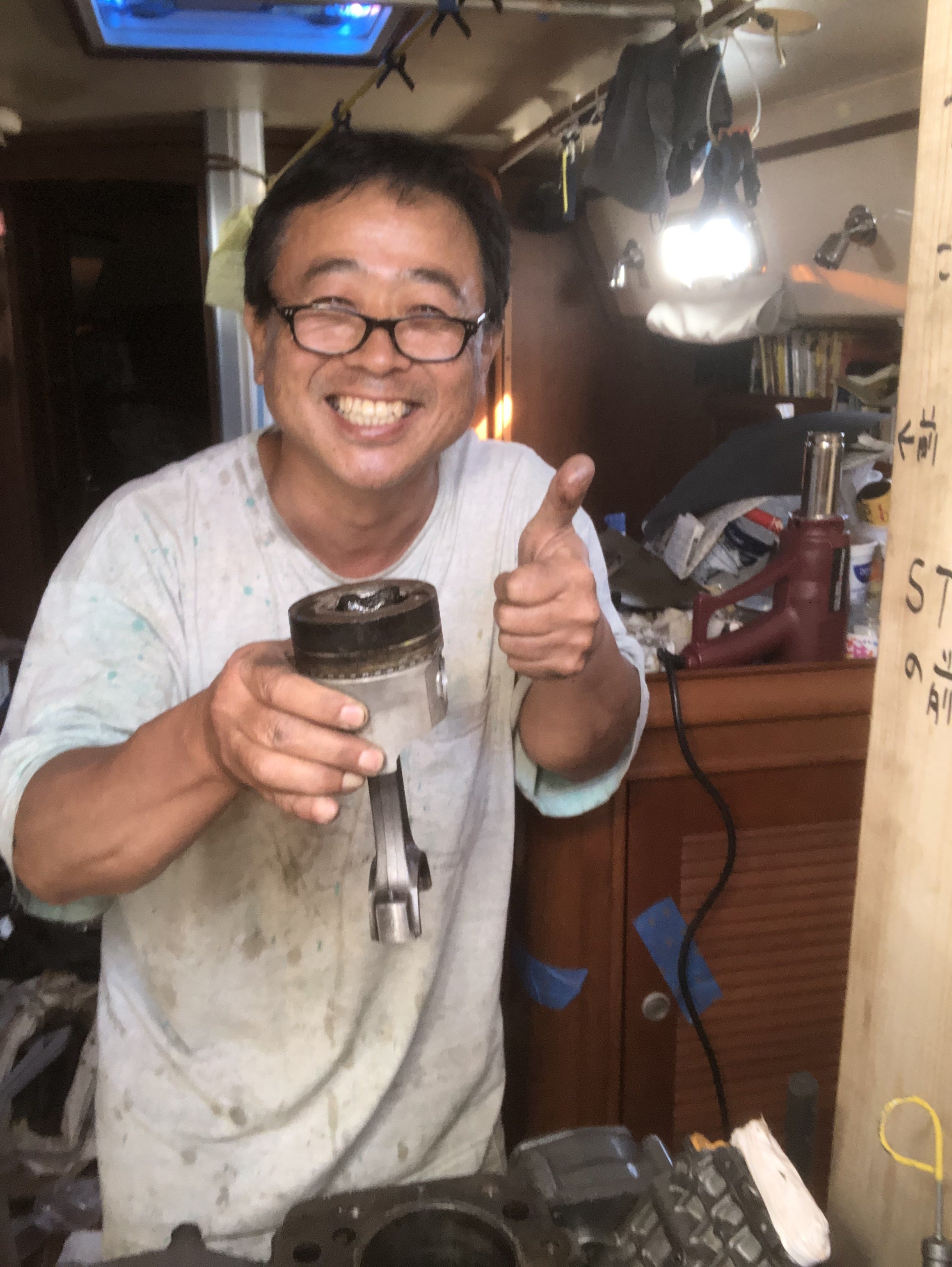 多くの友人に助けられて、エンジンのオーバーホール。1ヶ月以上掛かってやっと腐ったピストンを抜き出せた。