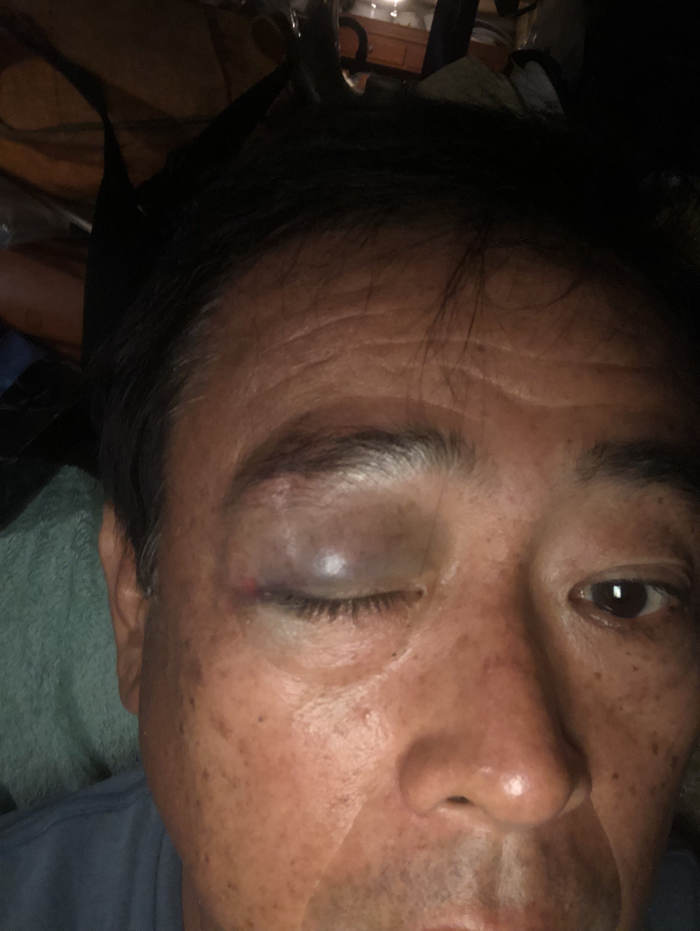 倉庫で作業中に材木が目に直撃。