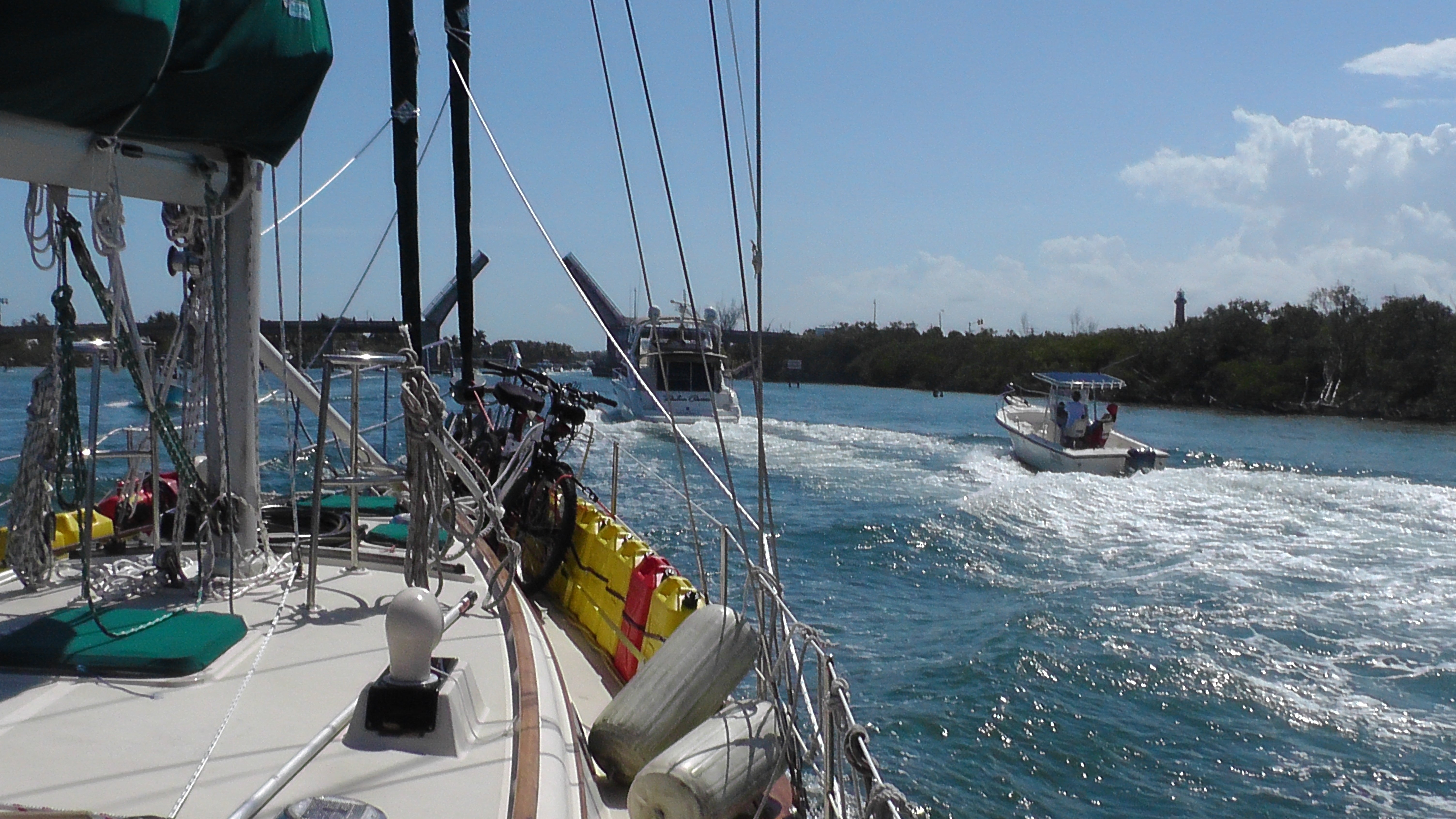 ★ アメリカ東海岸の内海運河(ICW)の航海に参加してみませんか。貴重な経験になること請負ます。何日間でも、どこの部分でも可能です。気軽にお申込み下さい。外海ではなく内海です。波がなく揺れない上、浅いから不安も無し。アメリカ大西洋岸沿いの少し陸側に運河があって、カナダからフロリダ迄続いています。言うならば、ボート用の道路(水路)みたいなものです。狭いところは幅が20m程です。大きな都市の街中や平原のジャングルの中の‟海の道”を航海します。偶にロック(海水面調整門)もあります。日本からの直行便のあるニューヨークやボストン周辺は気軽に参加出来そうで、お薦めです。