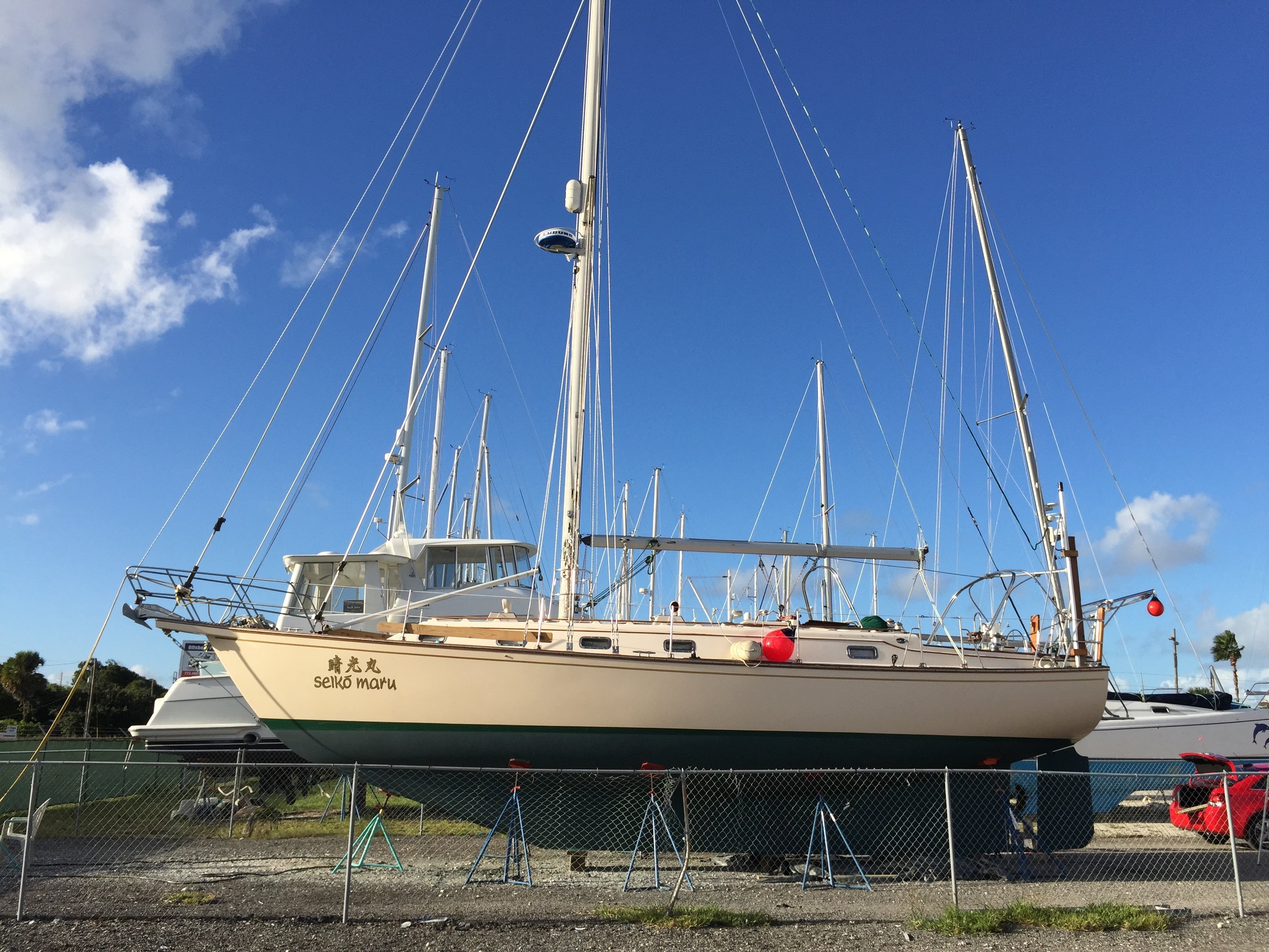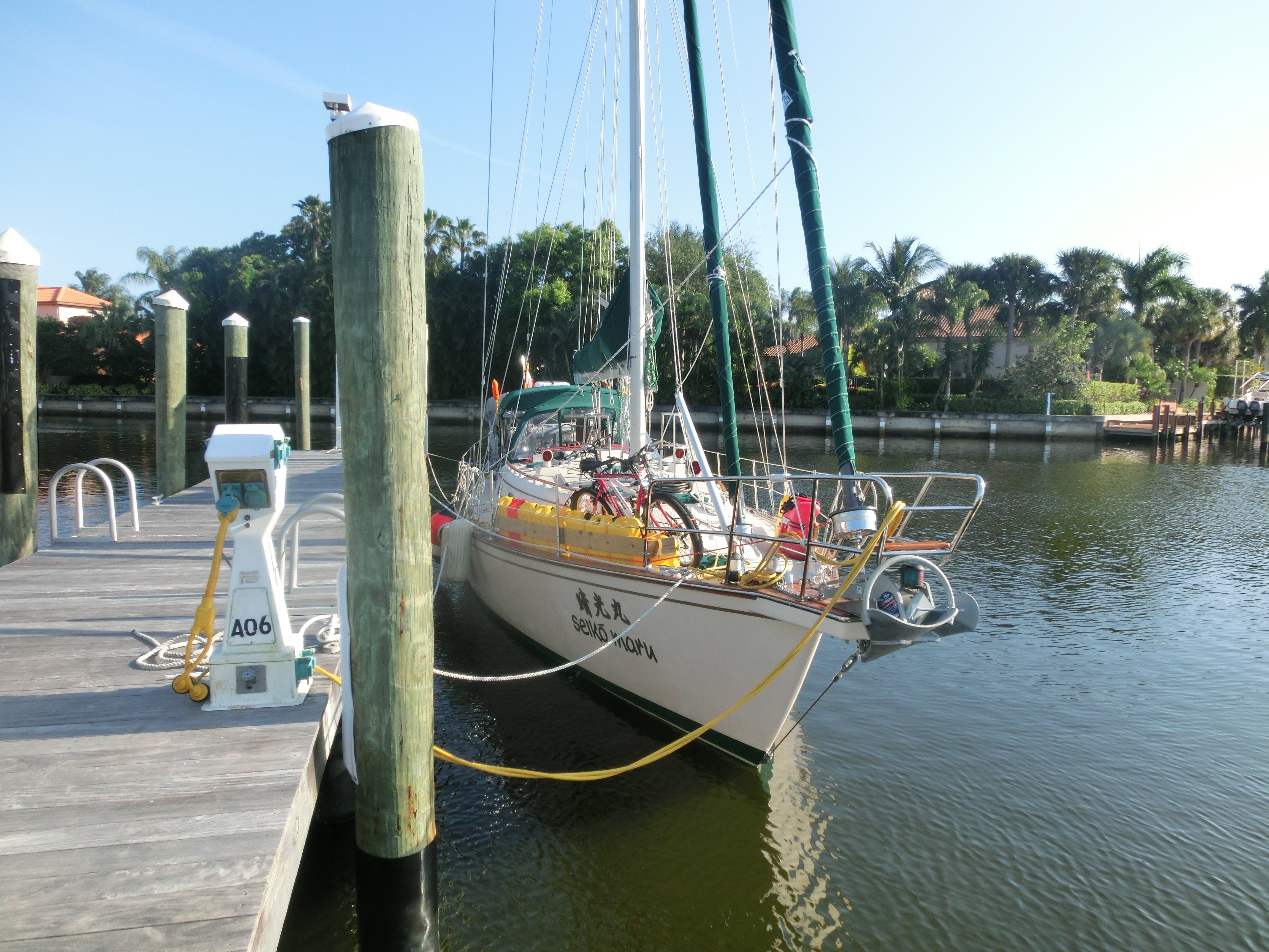 しかし、当時日本の仕事は忙しく、ヨットは20年間ほぼ使わないまま、アメリカ・フロリダ州の草むら(艇置料が安い)に置きっ放しでした。その全長13.5m(44フィート)のヨットを修理し、航海できる状態に戻して、日本の「日の丸」を船尾に掲げて、地球の色々の国を巡り、最終的には太平洋を横断して日本に帰ってくるという計画でした。自分にとっては一生に一度の命を懸けた一大プロジェクトです。