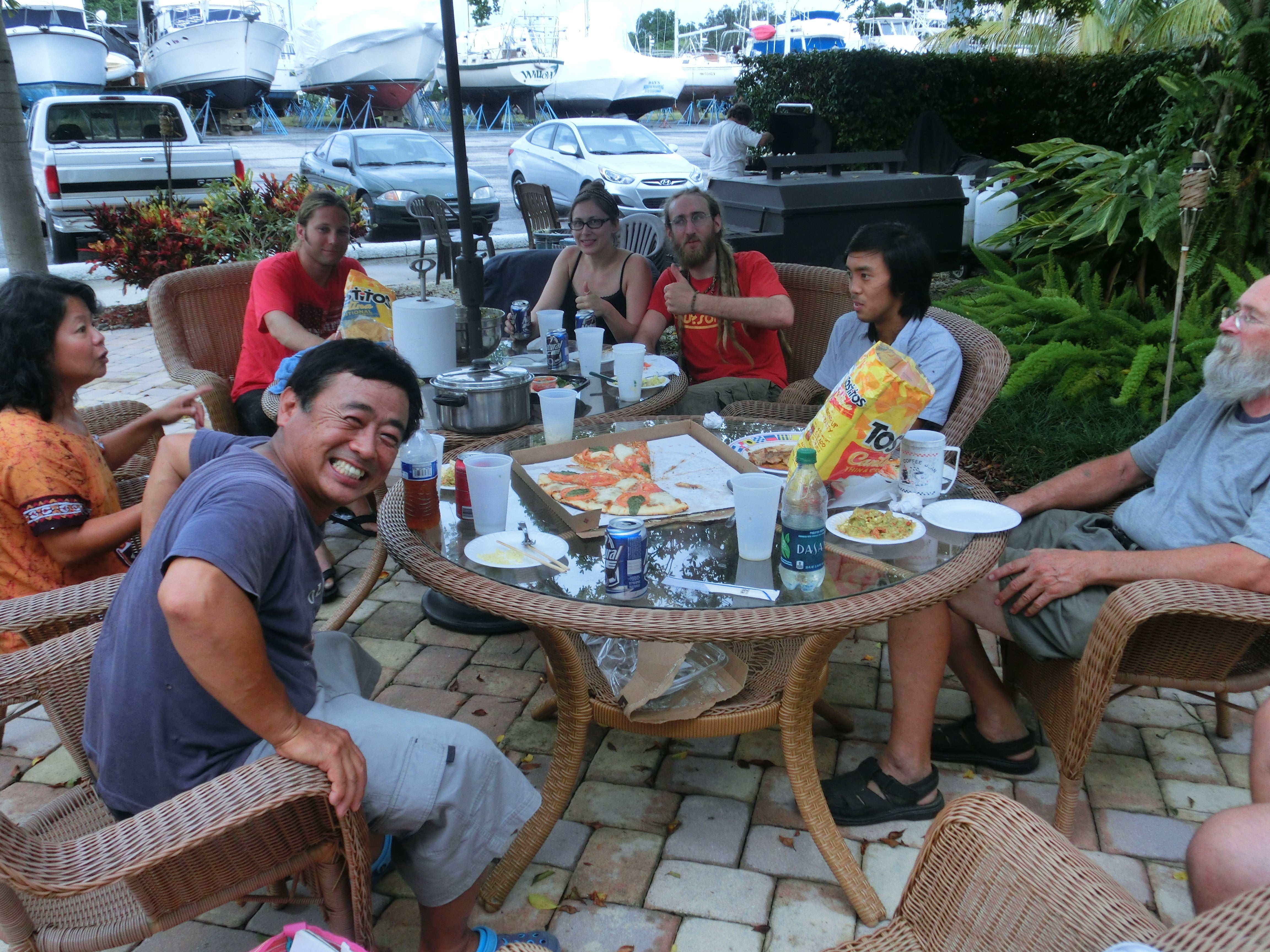 隣のヨットに招かれてパーティー