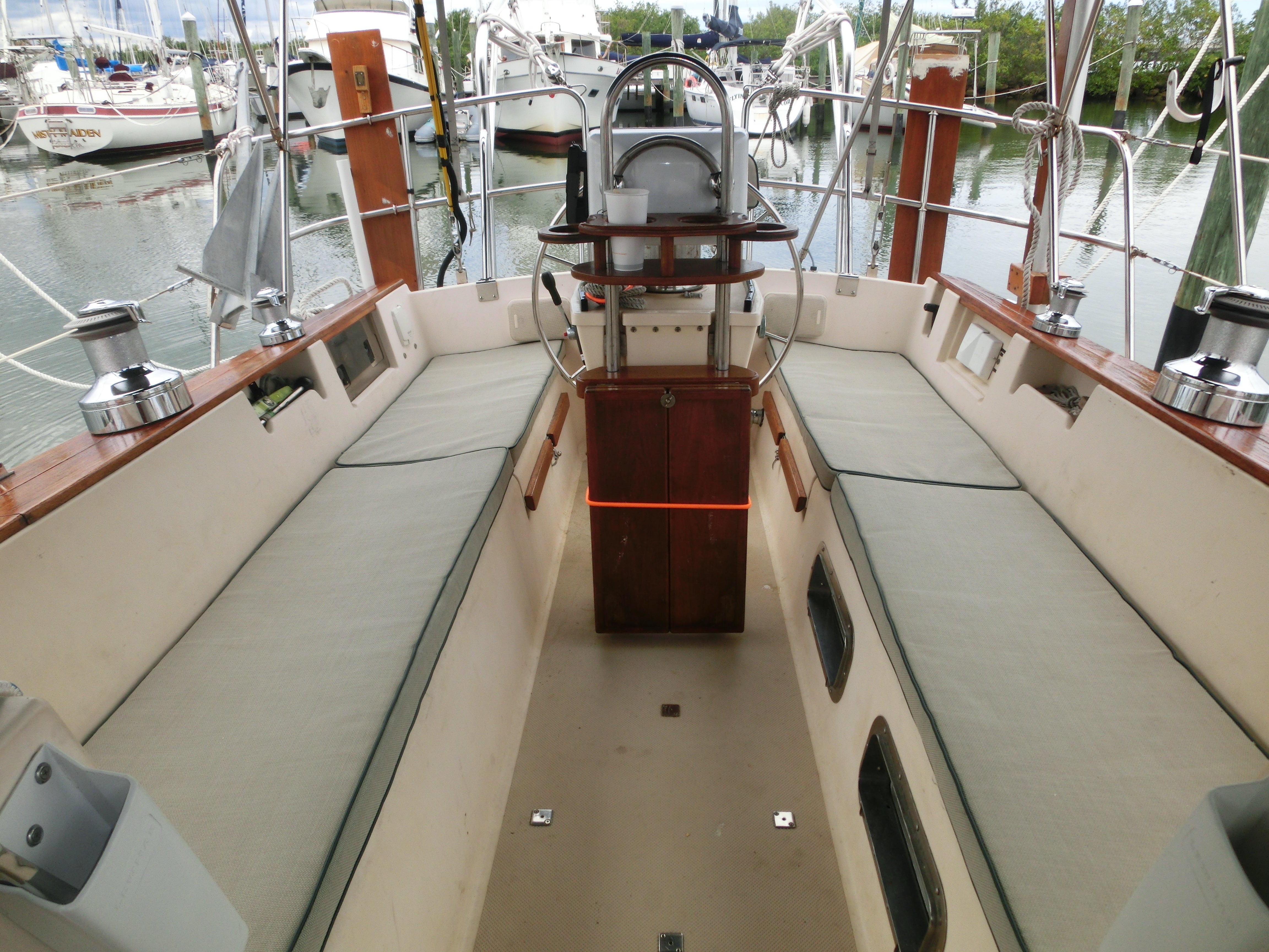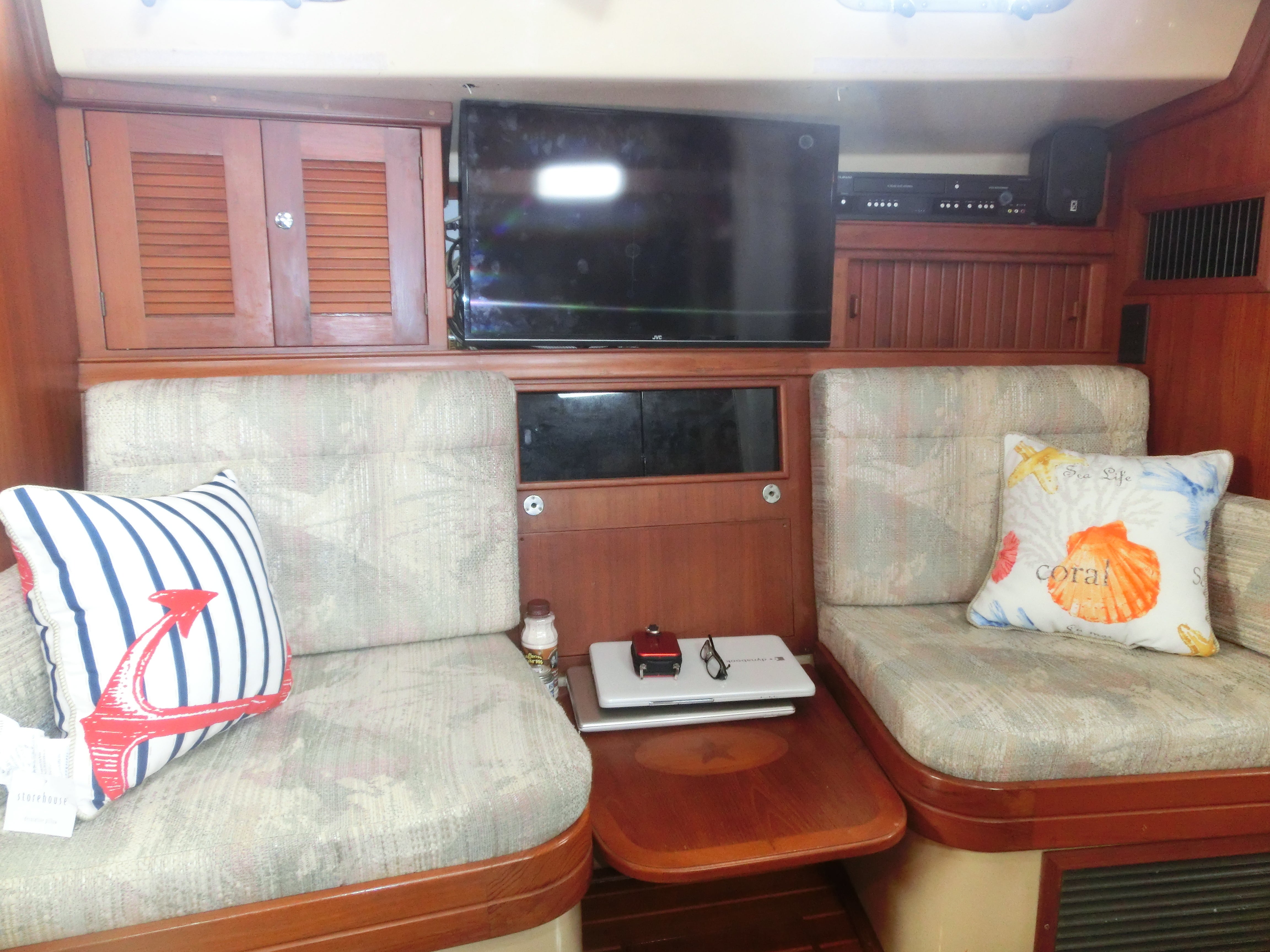45ftの堅牢で大きなオフショアヨットです。3キャビンで、トイレ・シャワーが2か所、TV、エアコン完備