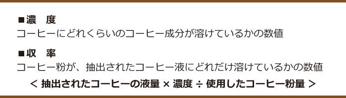 コーヒーの抽出というのは奥が深いですね。人それぞれに色んな淹れ方があって、人それぞれに正解があります。だから「美味しい」の証明はとても難しいと思います。でも、抽出に関して数値化できるものもあります。「濃度」と「収率」です。