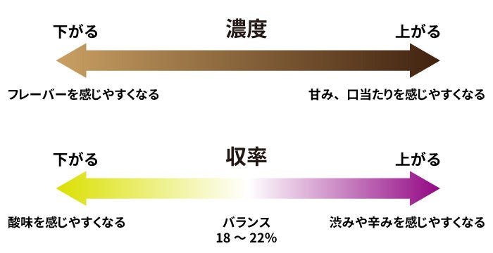 濃度が上がる ⇒ 甘み、口当たりを感じやすくなる