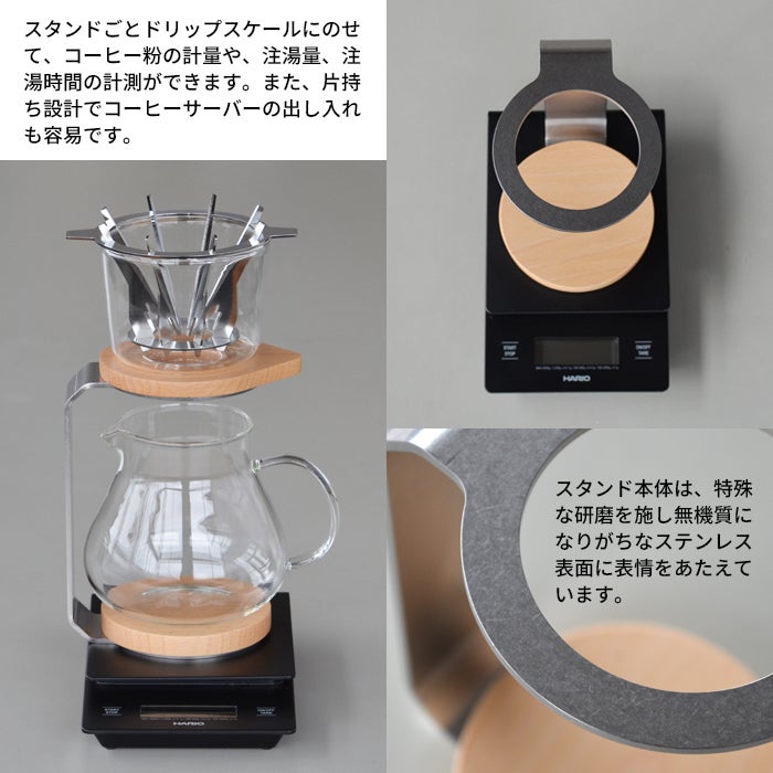 バートドリッパーをもっと使いやすくするために考えられた専用のドリップスタンドです。コンパクトなサイズはドリップスケールにのせるため。コーヒー粉の計量や、注湯量、注湯時間の計測が、バートドリッパーをセットしたままできます。また、特徴的な片持ちの設計で、コーヒーサーバーの出し入れも容易です。