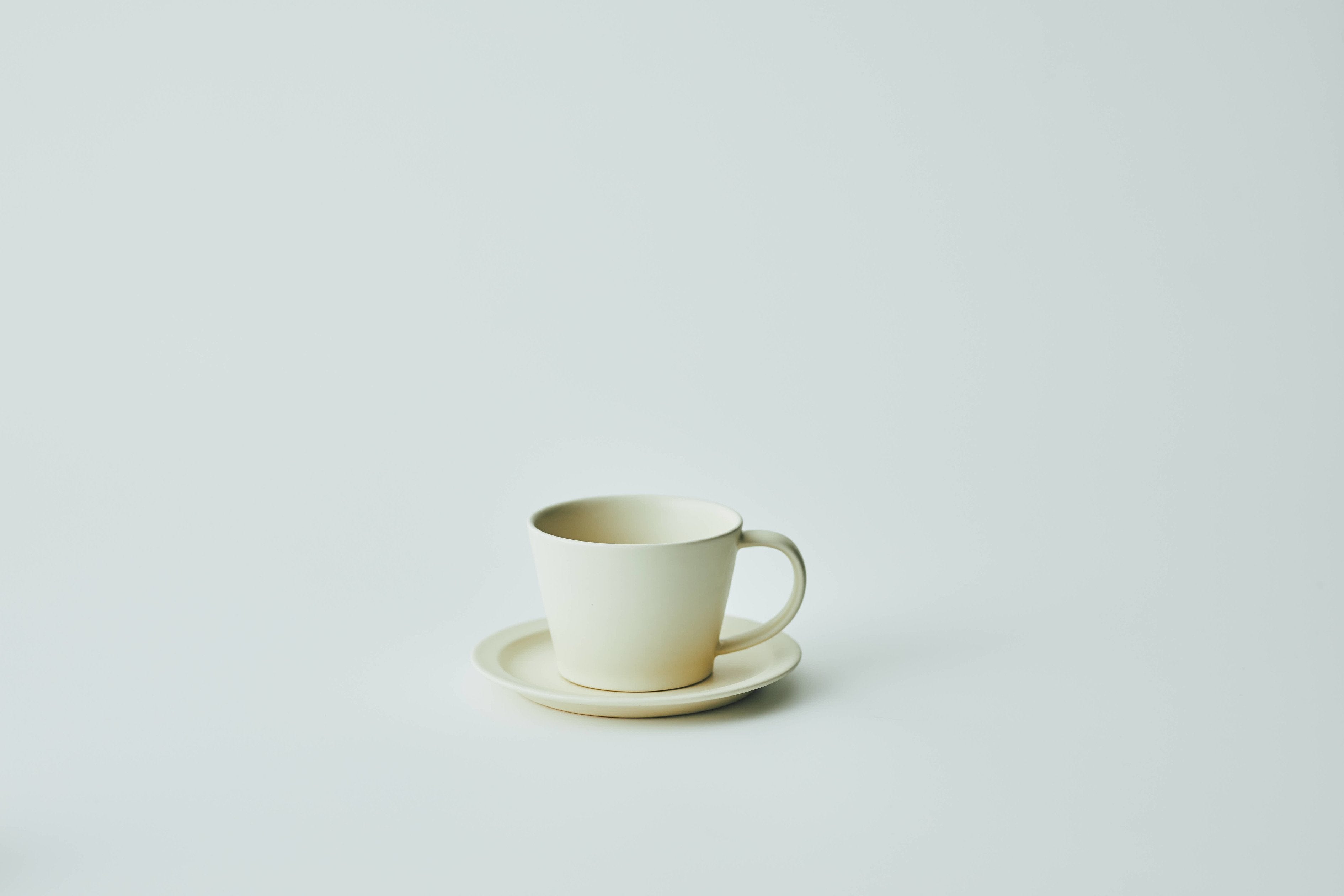 持ち手の部分が指にかかりやすい形に作られていて、シンプルなデザインでありながらこだわりが感じられるマグカップを小皿にも使える3寸のソーサーと共にお届けします。
