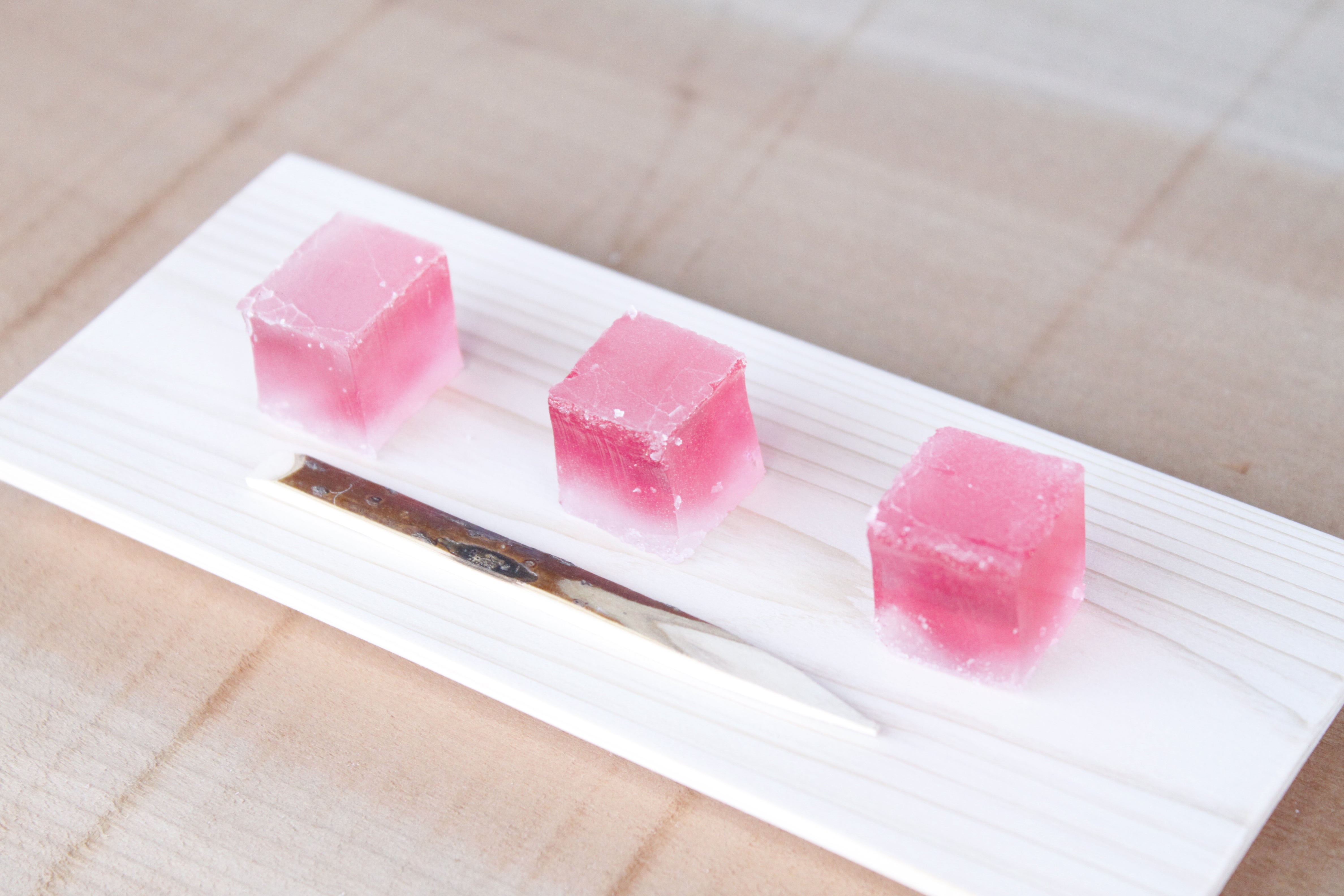 琥珀糖の甘さの中に絶妙なバランスでローゼルの酸味が感じられる味わいです。