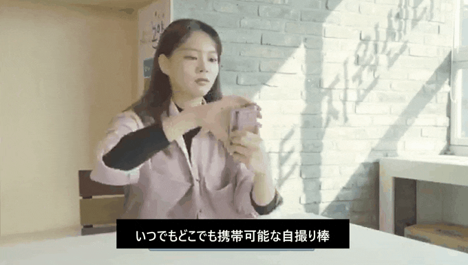 最大40cmまで自由に長さ調節ができ、360度回転可能なディスクで簡単に自撮り撮影が可能です。