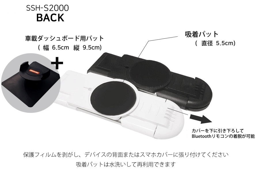 SSH-S2000に含まれている車両取付け用パーツは3Mテープを適用しており自由に着脱が可能で、接着力が優れていて、車の中で、スマートフォンを装着時に安定した状態で取付けることができます。