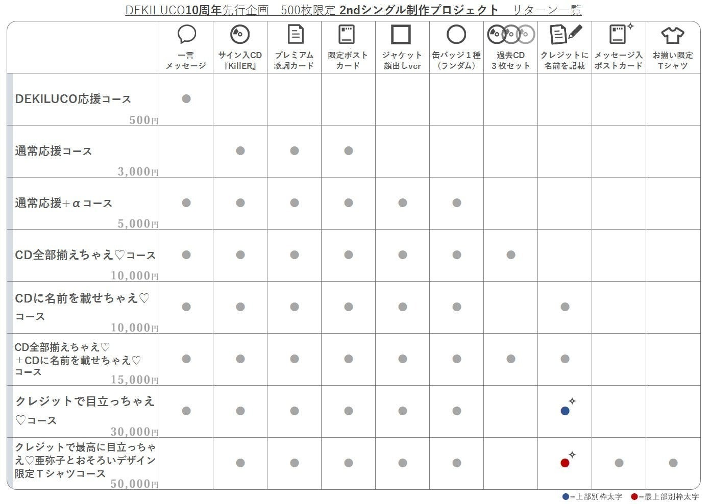 青丸=クレジットに名前を記載(上部別枠太文字で記載)