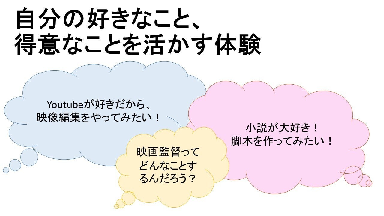 先ほど挙げた子のように映像作成をやってみたい子もいれば、