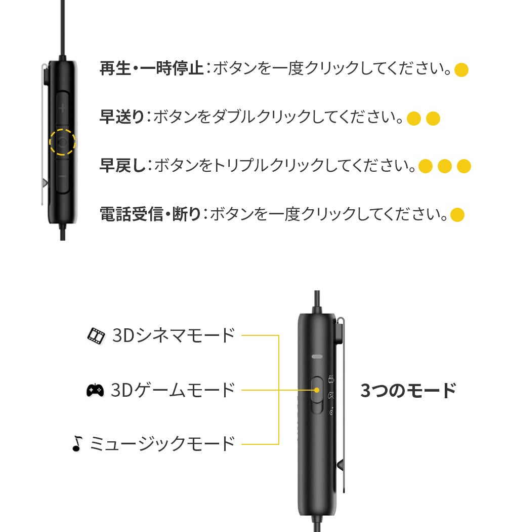 GAMOはゲーミング用イヤホンを目指し開発しましたが、すべてのユーザーが使えるAll-In-Oneソリューションイヤホンです。3Dゲームモード、3Dシネマモード及びミュージックモード3つのモードでほかのメディアと共に使用する時にも各モードに当てはまるサウンドを提供します。