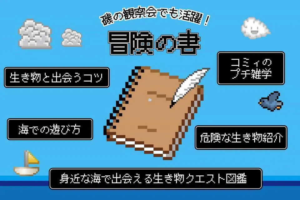 身近な湘南の海でも、たくさんの種類の生き物たちと出会うことができます。毎年、江ノ島の磯で、子どもたちと一緒に海の生き物の観察会を開催しています。今回は、観察会や海で遊ぶ時間がもっと濃密なものになるよう、磯遊びのガイドブック「冒険の書」を制作します!