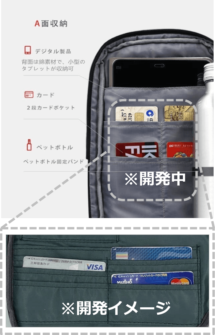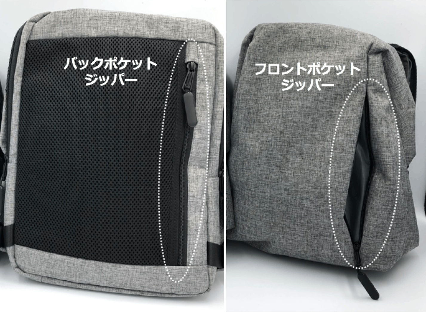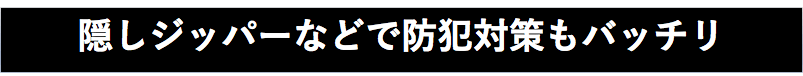④ 隠しジッパーなどで防犯対策もバッチリ