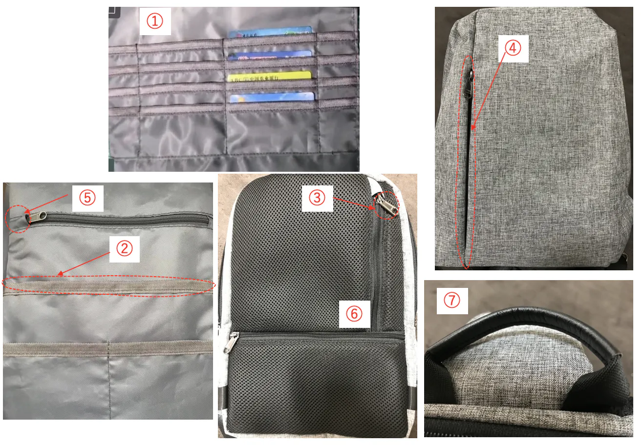 ⑥ 背面ポケット