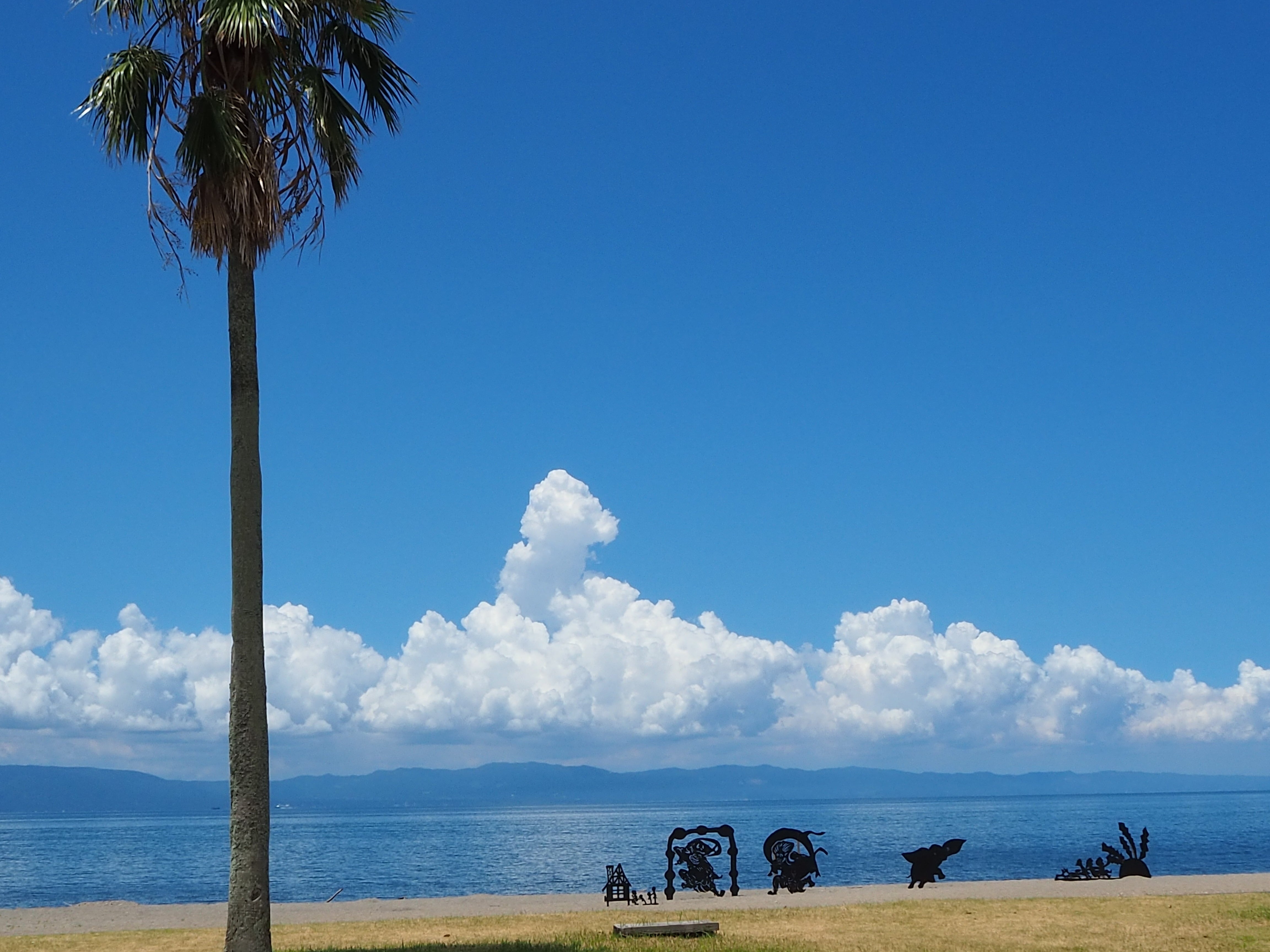 裸足になり波打ち際で元気にはしゃぐ姿に、