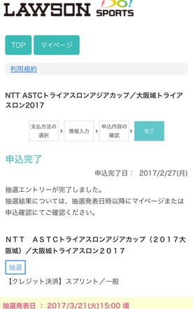 大阪城トライアスロン出場に向けてエントリーさせて頂きました^^