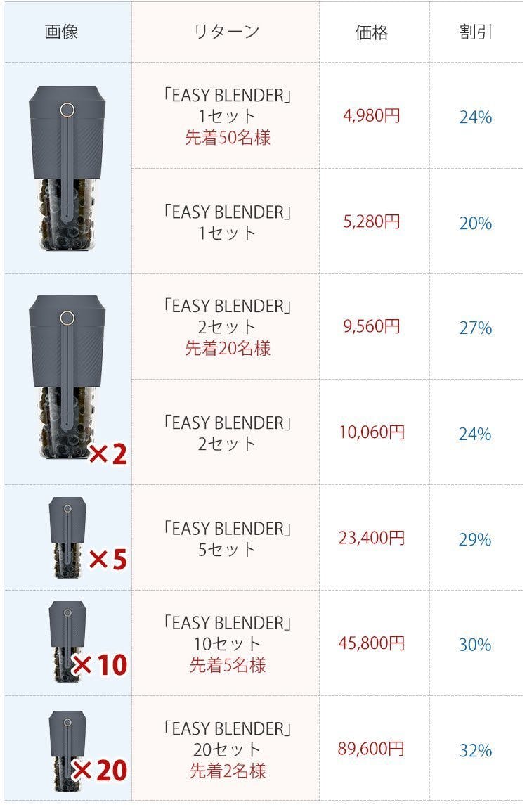 2019/10/31 11:45ご支援いただいた皆さま、こんにちは。雲集商事株式会社でございます最小軽量ハンディジューサー「EASY BLENDER」をご支援頂き、ありがとうございます。本プロジェクトは、842,720円 のご支援金額を賜り、無事に終了することができました!全てはご支援くださいました皆さまのお陰です、本当にありがとうございました!リターン商品の発送は予定通り、進捗状況につきましては、随時活動報告を通じでご報告させて頂きます。もう一点が『商品の郵送先』の確認です。 『住所記載ミス』や『引っ越し』等で、商品戻りが発生しております。円滑の商品をお届けさせて頂きたいので今一度、配送先の住所確認のご協力をお願いします。お申し込み時にご指定いただいた配送先は、マイページよりご確認いただけます。変更があった場合は、マイページより住所変更の手続きをお願いします。今後ともをよろしくお願いいたします。 もっと見る