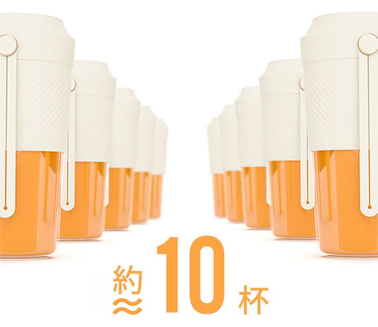 約3.5時間で満充電が完了。1400mAhのリチウム電池を搭載しており、1回の満充電で約10杯のドリンクを作ることができます。毎日使用しても、充電は週に1回で十分です。