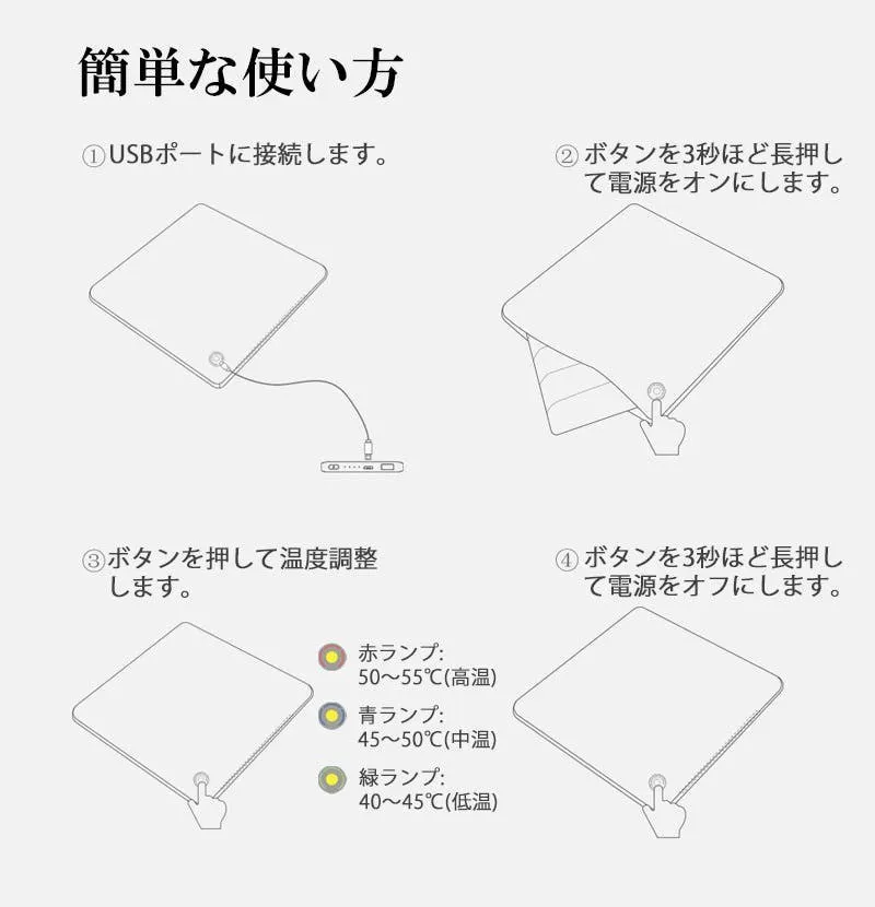 5V 2Aの出力ができるアダプターがあればもちろん、モバイルバッテリーでもこの基準を満たしていればどこでも使用可能になります!安全上座布団から放熱されますのでバッテリー内蔵の充電式ではありませんが、コンセントとモバイルバッテリーの両方で使用することができます!