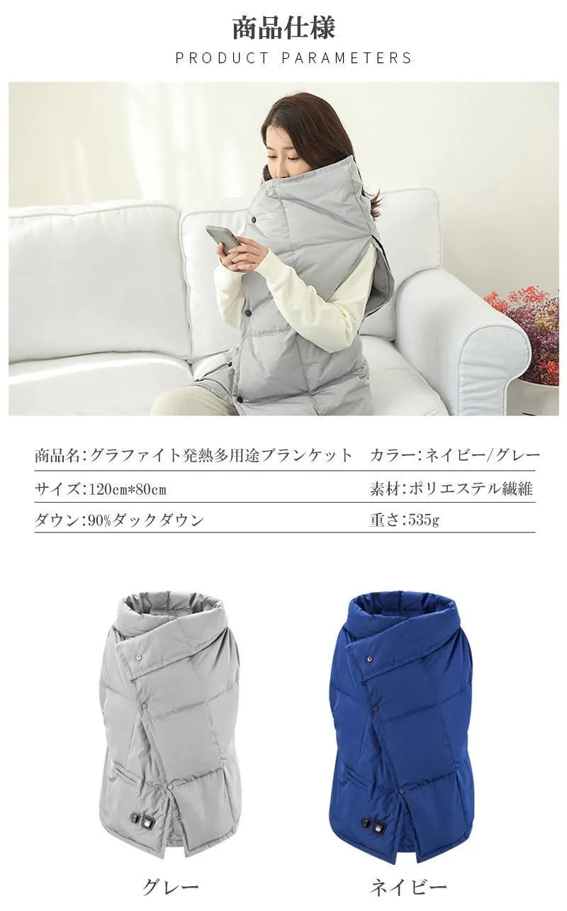 今年も寒くて憂鬱な冬がやってきます。でも特別心配することはありません。このグラファイト発熱多用途ブランケットがあれば暖かくこの冬を乗り切ることが可能です。ただのブランケットでは体温で温めてあげる必要はありますが、これは通電発熱式!また発熱モジュールにグラファイトを使用したことで、体の芯からポカポカするような暖かさが体感できます。従来でこういった製品は大抵電熱線式ですが、遠赤外線方式なので体の中から温めてくれます。