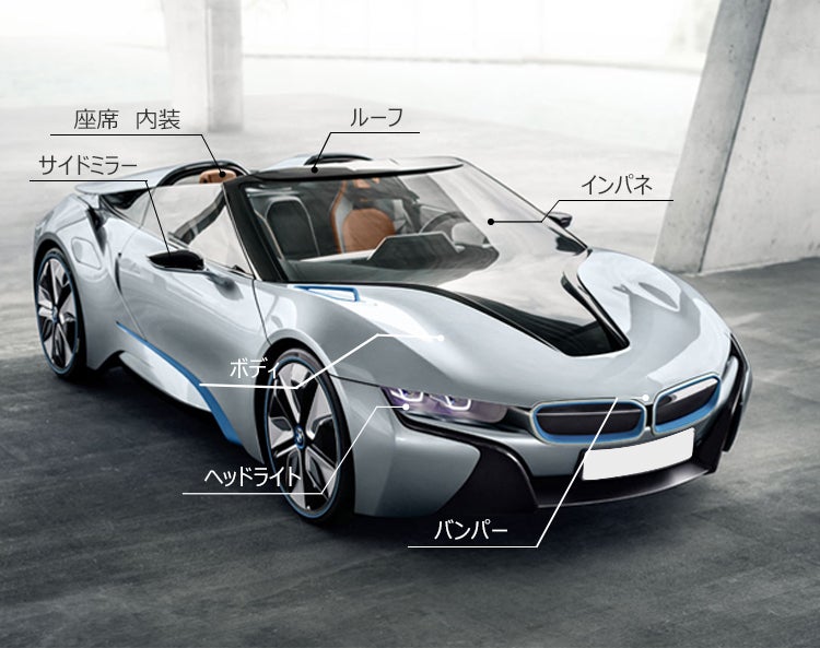 ボンネット、ルーフ、ヘッドライト、フロントガラスの外装から車内の座席や内装まで!
