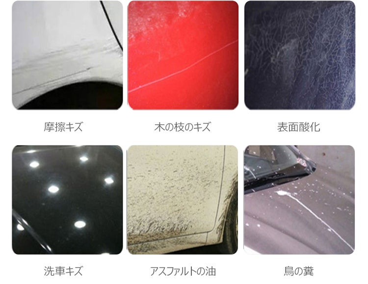 表面塗装をまんべんなく研磨することにより、『酸化物』や『アスファルトの油』等を取り除き光沢を取り戻します。ぜひキズ消しタオルも合わせてご購入下さい。