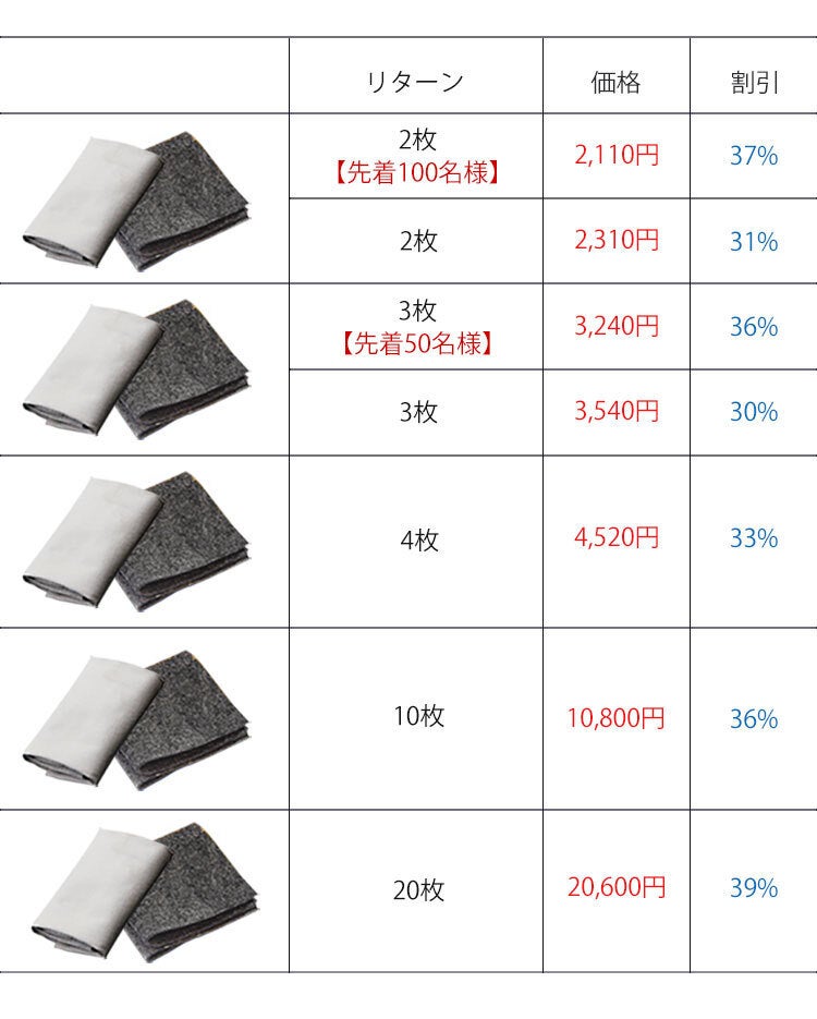 A:キズ消しタオルは15回以上も利用できます。使用後に密封袋に保管して下さい。