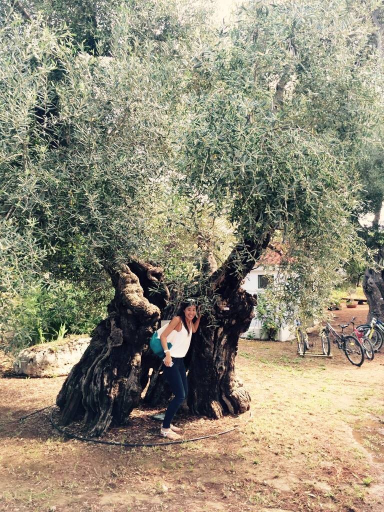 2000年の歴史があるオリーブの木。大人が5人中に入ってもまだ余裕があります。