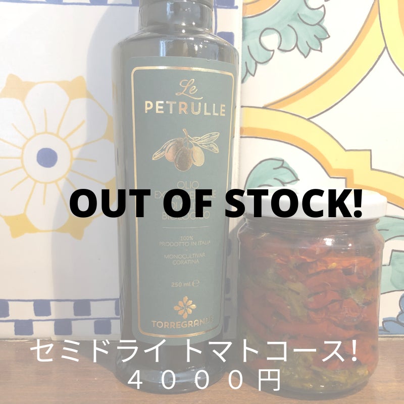 2つ目は、自家製セミドライトマトとオリーブオイルのセットだったのですが、すでに完売しました!2名様限定だったので、リリースして1時間以内になくなってしまいました。考えていらした方がいらっしゃいましたら、本当に残念ですが申し訳ありません!自家製なので数に限りがありました。