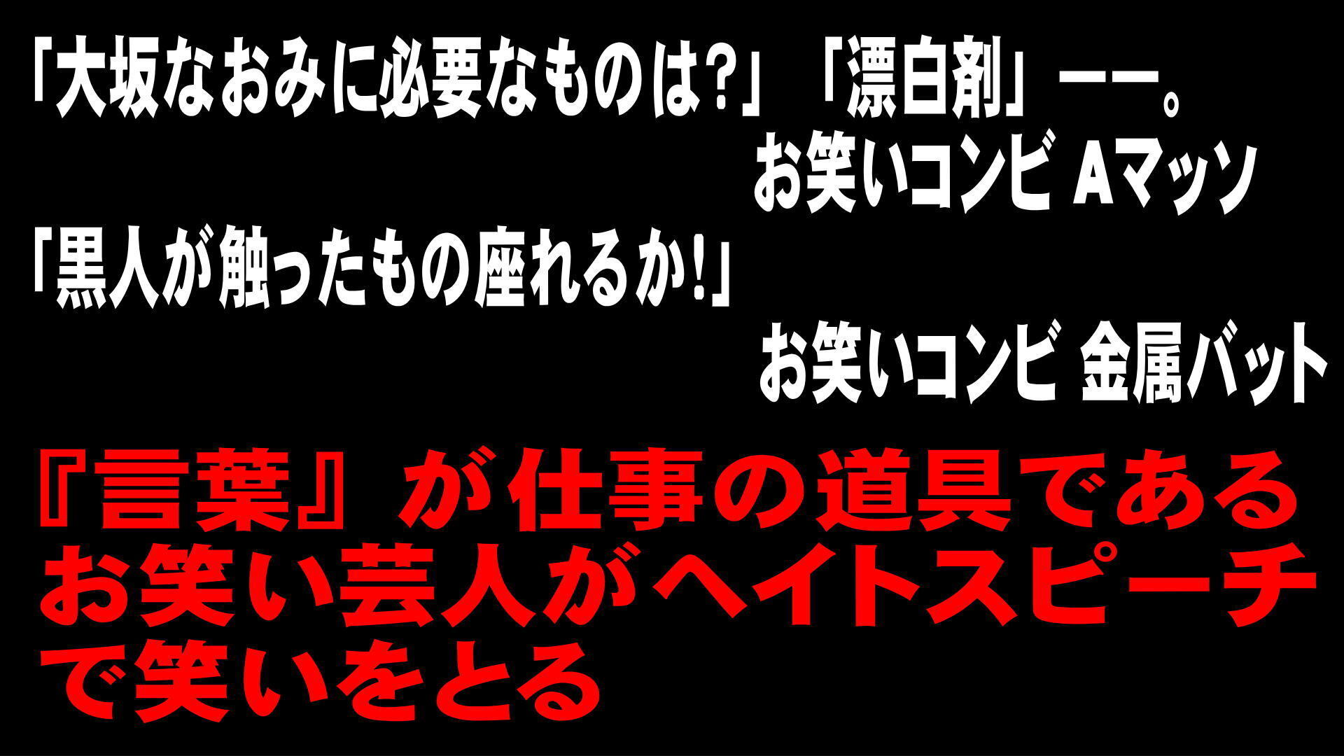 『言葉』が仕事の道具であるお笑い芸人がヘイトスピーチで笑いをとる