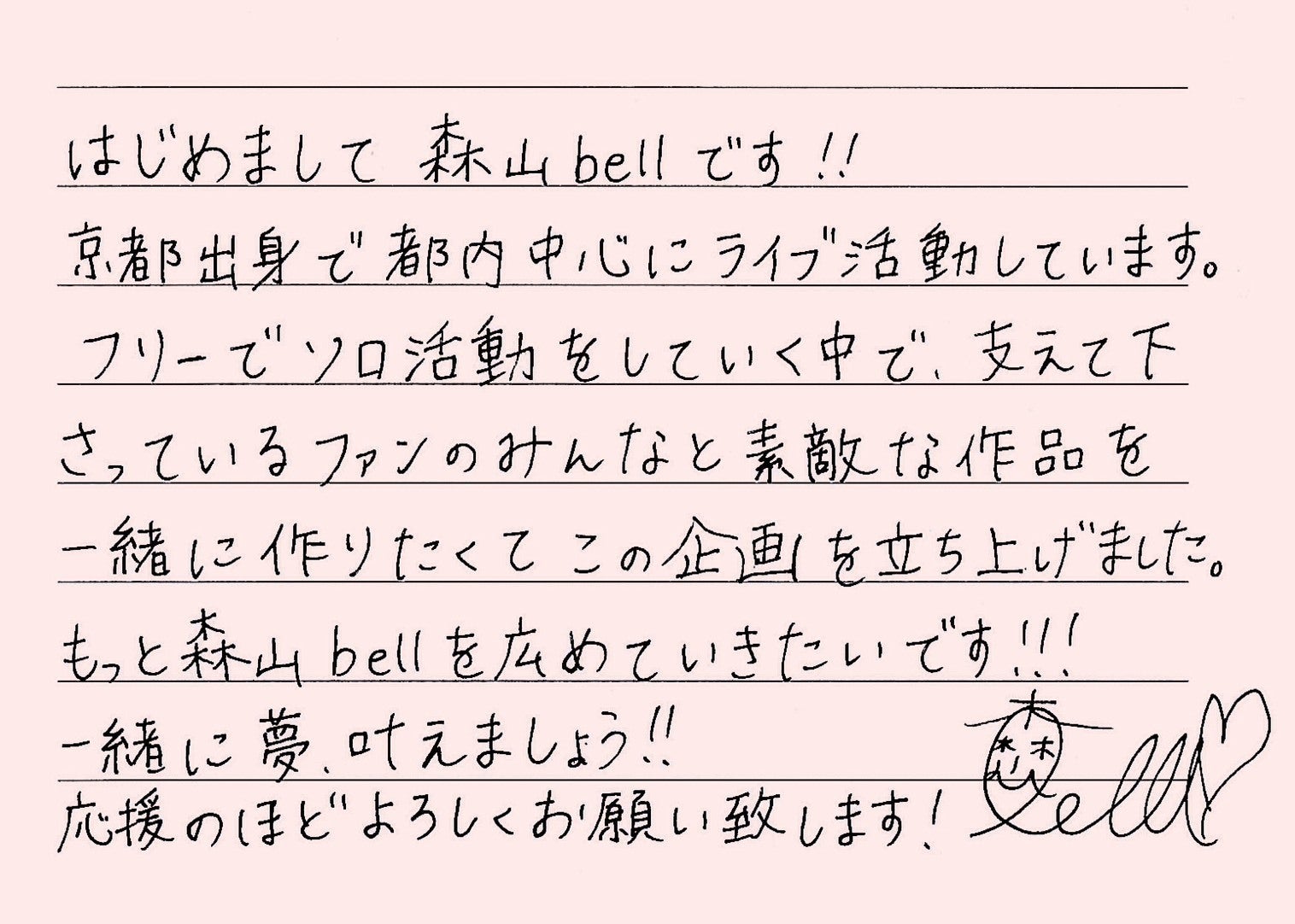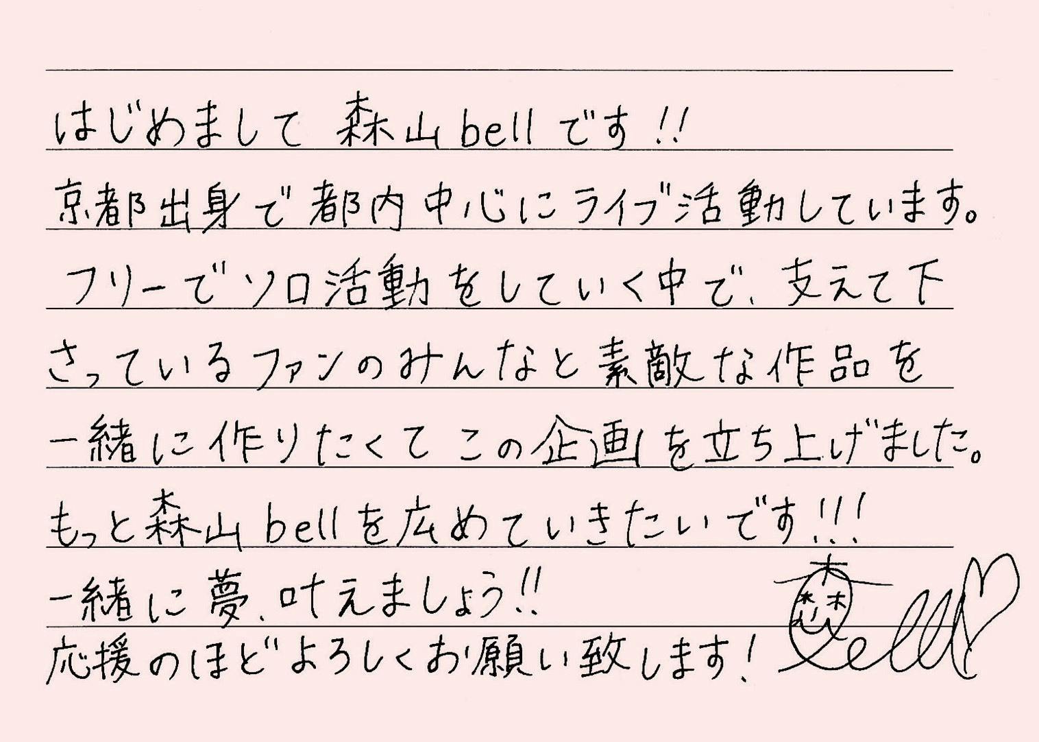今回このようなチャレンジをして、少しでも多くの人に森山bellを届けられるチャンスなのではないかと思いプロジェクトを立ち上げました。