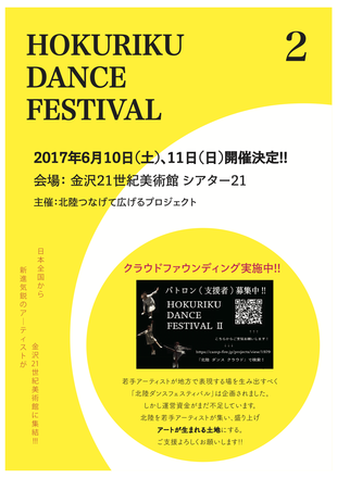 2017年6月に開催が決定した『HOKURIKU DANCE FESTIVAL Ⅱ』を企画・運営しております。