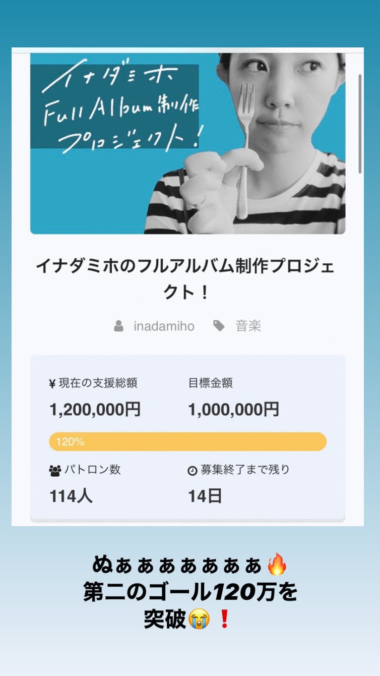 第二のゴール120万円「収録曲と制作チームの増員」が達成されました!