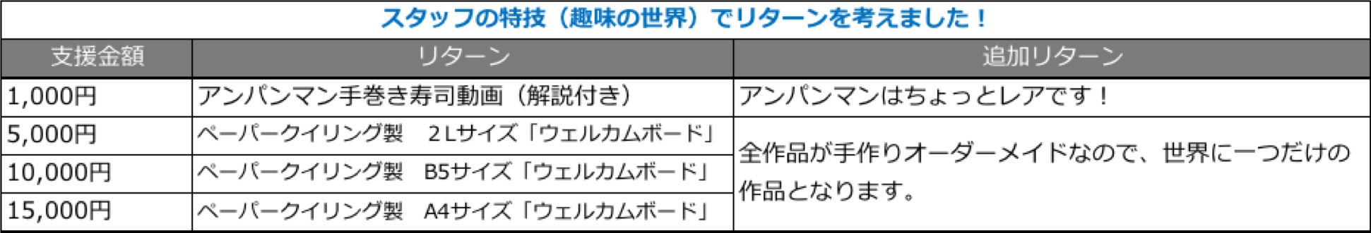 目標金額に満たない場合も、計画を実行し、リターンをお届けします。